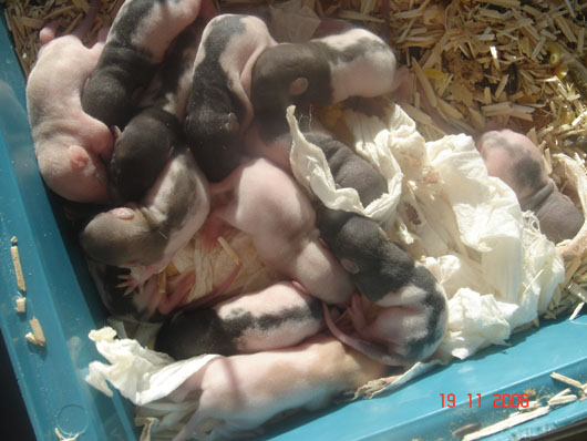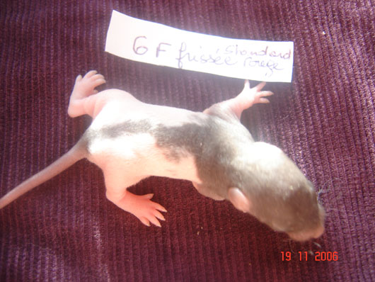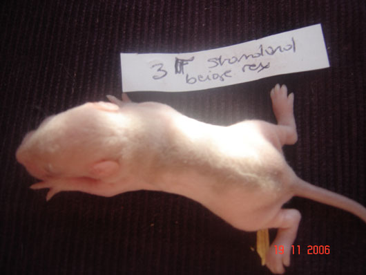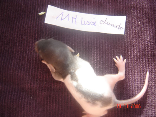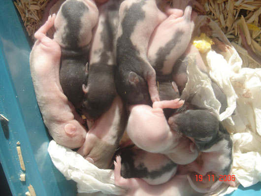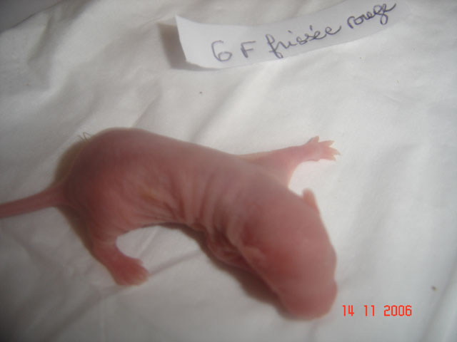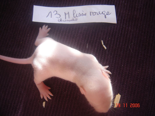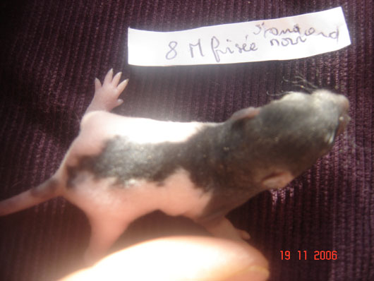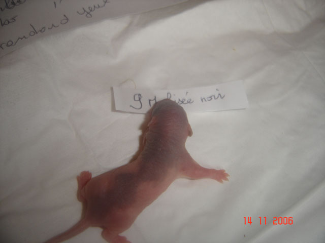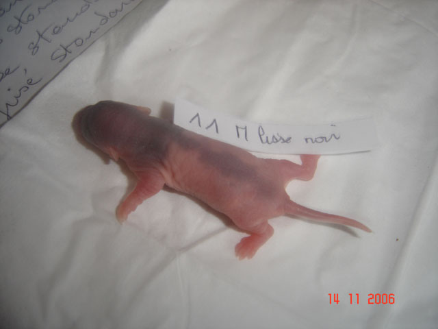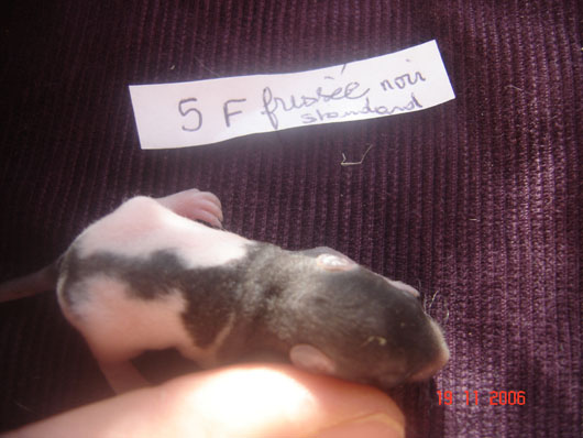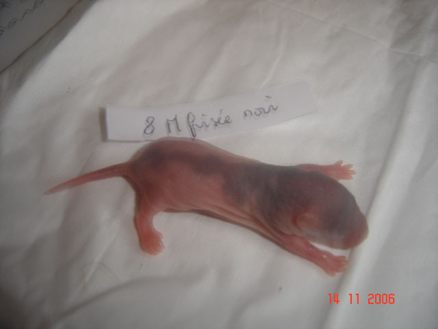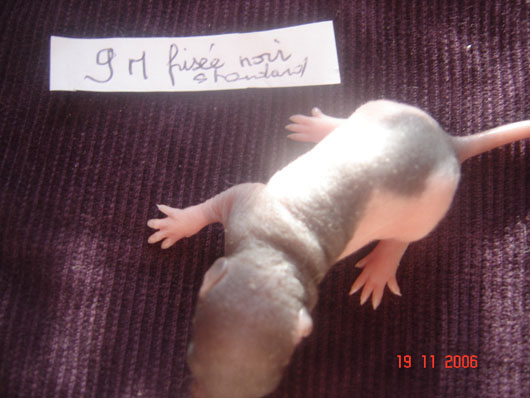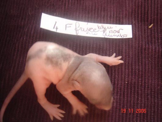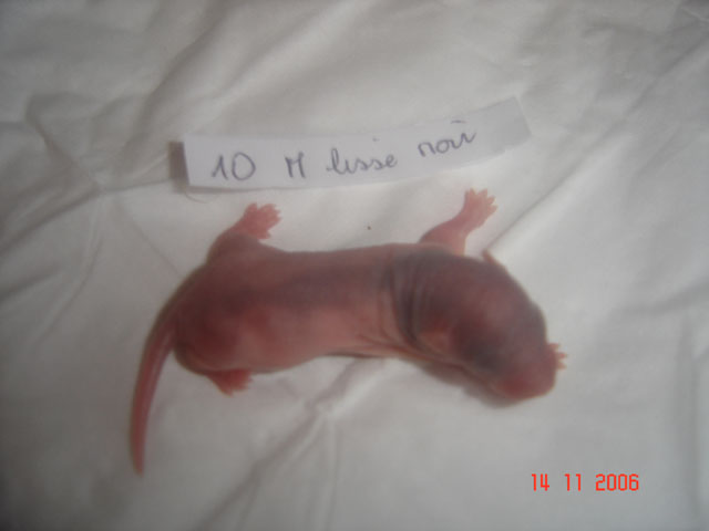 crobe11 0 Posté(e) le 16 novembre 2006 J'étais justement en train de répondre sur le post adoption quand j'ai vu en revenant à index ce sujet donc voilà comme je le disais, portée surprise. Rustine, la fille de Dobby et Betsy qui avait eu une portée à 7 semaine et bien cette dernière n'a rien trouvé de mieux que de réussir à passer chez les mecs en passant sur le côté de la séparation de ma volière et je m'en suis aperçu de suite donc j'ai remis la demoiselle dans sa parti et remis le bac correctement puis j'ai bouché les trous pourtant pas gros du tout Ceci s'étant passé il y a environ 20 jours et je n'osais pas croire qu'en si peu de temps....... Et ben si : Rustine : hooded rex noire standard, née le 20 juin 2006, fille de Betsy uni rex topaze standard et de Dobby dumbo nu noir enregistrer n° de pédigré n°2420F de la portée n° 1447 Voici la maman, mais pour le papa ben c'est un grand mystère et celui qui trouve qui est le père aura gagné la portée entière. Femelle lisse dumbo hooded yeux noir : Femelle lisse standard hooded yeux noir : Femelle frisées dumbo capé yeux noir : Femelle frisées standard hooded yeux noir : Femelle frisées standard hooded yeux noir : Femelle frisée standard uni yeux rouge : Mâle frisées dumbo hooded yeux noir : Mâle frisée standard hooded yeux noir : Mâle frisée standard hooded yeux noir : Mâle lisse standard hooded yeux noir : Mâle lisse dumbo hooded yeux noir : Mâle lisse standard uni yeux rouge : Mâle lisse standard uni yeux rouge : Voilà Partager ce message Lien à poster Partager sur d’autres sites