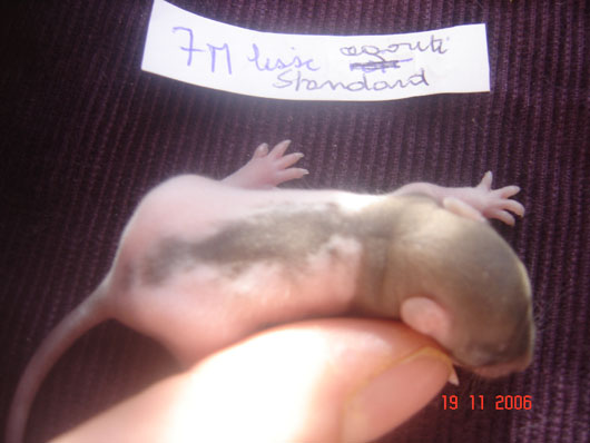 crobe11 0 Posté(e) le 17 novembre 2006 Aerith a écrit:Rustine c'est un super nom pour une ratte qui passe dans les trous :p:p (nan nan c'est bon je sort toute seule pas la peine de me pousser ^^) MDRRRRRRRRRR, je n'y avais pas pensé mais c'est peut-être pour ca qu'elle arrête pas Voici les bébés avec un début de poipoils NE PAS SE FIER AU ETIQUETTE A COTE DU RATOU, c'est juste un repère pour moi : RF1 : femelle hooded lisse standard noir : RF2 : Femelle lisse agouti dumbo (reste à la maison) : RF3 : Femelle rex hooded beige standard : RF4 : Femelle nue hooded bleu dumbo (pré-réservé à SecreT-Angel) : RF5 ! Femelle rex hooded noir standard : RM6 : Mâle rex hooded noir dumbo : RM7 : Mâle lisse hooded agouti standard : RM8 : Mâle rex hooded noir standard : RM9 : Mâle nu hooded bleu dumbo (pré-réservé à Emporia) RF10 : Femelle rex hooded agouti standard : RM11 : Mâle lisse hooded noir dumbo : RM12 : Mâle lisse hooded beige standard : RM13 : Mâle lisse hooded beige dumbo : Alors comment vous les trouver avec leurs poipoils ? Partager ce message Lien à poster Partager sur d’autres sites