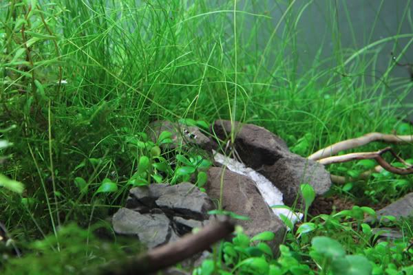 Orchid1 0 Posté(e) le 2 mars 2011 Hello à vous! Je vous présente mes bacs Au départ était un iwagumi..... avec 10 Sakuras , 20 Pygameus Aujourdh'ui sorti du tapis des juvs qui pètent le red...Mon premier bac dédié aux Cantonensis sp. Mais également à mes plantes.... Au départ de l'histoire....un crackage pour un groupe de 10 CRS/CBS...en rentrant chez moi et en photgraphiant le lot, des potes m'ont certifié avoir fait une super affaire et chopé pour 70 Euros un groupe de 10 CRS Mosura, No Entry, Hinomaru....puis de fil en aiguille, comme tout ces bien passé, et bien je me suis pris au jeux... et j'ai donc décidé de leur dédié un bac.L'esprit: un bac en mouvement mais pas par mes actions....Un mélange de laisser agir, de chaos, ou seul mes cisceaux viendrons contenir où raser....à suivre...Le sol dans le fond Oliver Knott + Akadama au dessusau milieu jbl 3cm + 3 cm de sable de rivièredevant sable de rivièreéclairage actuel (2x11w en fin de vie) et led 2.4 w en attente 9h par jourco2 couplé avec electrovanne 1b/soxygénation par bulleur 8h / 13hplantes:Myriophylum Mattogrensse sp green, Juncus Repens, Valisneria Nana, Bacopa Australis, Flame Moss, Erect Moss, Weeping Moss, Rotala sp Pearl, Macrandra narrow leaf spé Green, Eleocharis Vivipara, Microcarpea Minima, Erect Moss, Limnobium, Bolbitis Heudeloti, Microsorum Split Narrow, Giant MossSans engrais.Bac agé d'un moisLes habitantsLa doyenneavec sa bandedans leur environnementUne snow une blackLes derniers nés 3 Génerations de juvs (la red fait un cm... )de loin de prêtun petit panorama du premier plan avec black tiger, cbs, juvs et femelle cbs entrain d elarguer des juvs...Mon 140 L dédié Stiphodon, Caridina Multidentata, Orysias Mekongensisà suivre Partager ce message Lien à poster Partager sur d’autres sites