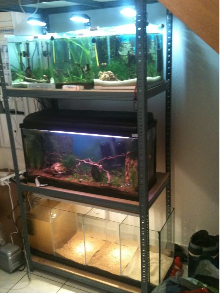 Jerem80 0 Posté(e) le 13 octobre 2011 voila l etagere que j ai mise en place apres ce foutu demenagement le bac du bas est un 120l que j ai recupere en debut de semaine et que j ai separe en 4 j ai mis un premier bac en eau et pas de fuite pas mal pour une premiere aujourd hui les 4 bacs sont remplis reste plus qu a attendre que les cycles se fassent Partager ce message Lien à poster Partager sur d’autres sites
