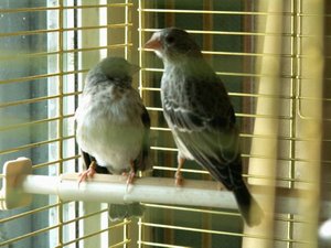 Amiloz 0 Posté(e) le 11 juin 2009 Bonjour! Un petit oiseau au plumage sobre et au cœur gros comme ça Voici la bête:___________ à part la 1°, les photos proviennent du web, je les retirerai sur simple demande de leur propriétaire Pour télécharger le chant, cliquez sur les photos A l'audition, le mâle (à droite) de la 1° photo. Le "Serinus Leucopygius" est un cousin du canari: Fringillidé africain Sous espèces connues: S. l. leucopygius S. l. pallens S. l. riggenbachi Répartition: Source: http://sea.unep-wcmc.org/isdb/CITES/Taxonomy/tax-species-result.cfm?Genus=Serinus&Species=leucopygius&source=animals&displaylanguage=fra&tabname=distribution touti riquiqui (7 à 9 cm),(c'est le plus petit des fringillidés) au chant très mélodieux, reléguant les brames de Lara Fabian au rang des laxatifs auditifs les plus puissants. Il est devenu très très rare depuis l'arrêt des importations; même chez les éleveurs, et pratiquement menacé d'extinction en élevage. expliquant en partie les tarifs prohibitifs des oiseaux proposés sur le Web. S'il y a des détenteurs ici, ou si vous en connaissez (demandez dans vos clubs), n'hésitez pas à me le dire! Il faut dire que le plumage sobre (du blanc (croupion et ventre) au gris foncé sur le dos, en passant par le poitrail moucheté de gris clair), la taille minuscule (encore plus fin que le mozambique), sa fragilité et la difficulté de la reproduction ne l'avantagent pas. Il est de plus assez peu connu. Il n'est pas très prolifique: 3 œufs en moy par ponte et 2-3 pontes par an. Les deux sexes sont identiques, seul le chant permet de les différencier (au mieux vers 3-4 mois) Pas de mutation connue à ce jour. C'est un oiseau calme (hors repro) que l'on peut mettre par couple en volière avec d'autres oiseaux (à part le mozambique et encore..), il saura s'y faire respecter! Il devient assez familier avec l'age, (Bien entretenu, il vit + de 10 ans) c'est une de ses qualités. On s'y attache vite! Il se contente d'un mélange pour exotiques auquel je rajoute 20 à 30% d'alpiste. Durant les périodes froides (et repro), je rajoute un godet de mélange pour canaris, en ayant trié (tamisé) l'avoine et le chanvre. Ces graines étant trop grosses pour lui. J'ai 2 couples actuellement, malheureusement un seul se reproduit régulièrement (mais au bout de 2 ans). Les femelles sont assez fragiles en période de reproduction (mal de ponte, coup de froid, constipation) qui va de Sept-Oct à Mars-Avril voire jusqu'en Juin. (élevage en intérieur) Un petit truc qui peut être utile: Pour éviter les refroidissements: Une lampe chauffante céramique 40 à 100W de terrarium (sans lumière) au dessus d'un coin de la cage, les oiseaux vont s'y réchauffer en cas de besoin, les jeunes notamment, après la sortie du nid. (il faudrait chauffer la pièce à + de 25° je pense) En période de repro, je donne: un peu (très) de verdure tous les jours, de la coquille d'œuf bouillie puis réduite en poudre fine dans le Grit+ ORNI-Lux dans l'eau de boisson, du vinaigre de cidre (5-6 gouttes pour 60 ml) 1 ou 2 fois / semaine, un soupçon de pâtée (œufs, couscous, pro biotique, niger, os de seiche en poudre ou ORNI-Lux), un petit godet de graines canaris (alpiste, navette, niger, lin), éventuellement pinkies. Comme matériaux pour le nid: charpie très fine et poil de chèvre dans un nid en ficelle de sisal adapté à la taille de l'oiseau (la coupe intérieure fait env 4cm)(fait maison) que l'on peut camoufler un peu avec quelques branchettes de thuya ou sapin artificiel. Chez moi, la femelle perd fréquemment des plumes (surtout sur la tête ?!) en période de repro. La repro n'a pas été terrible cette année: juste 5 jeunes (du même couple) et pas mal d'œufs clairs. Pour 2 couples, 17 œufs pondus et 5 jeunes .. Les quelques jeunes que j'obtiens vont en priorité aux échanges, puis aux personnes amis qui les réservent, je cède parfois quelques mâles qui sont appréciés pour leur chant. (ou pour faire des hybrides?) Voila, si vous êtes arrivés au bout de cet article, j'espère vous avoir fait partager un peu de ma passion pour ce petit oiseau dont le ramage est bien supérieur au plumage. Cordialement Partager ce message Lien à poster Partager sur d’autres sites
