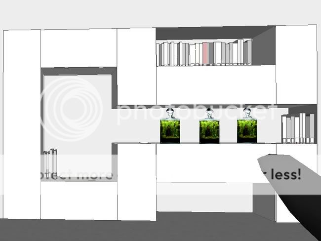 xia mi 0 Posté(e) le 26 septembre 2010 Bonjour, j'ai un projet pour une installation mais faut-il encore que je trouve un bon équilibre en la technique, le réalisable et si possible un certain esthétisme.Je souhaite faire un diptyque ou triptyque avec des nano 10 l (même si je peux encore changer d'avis sur la contenance des bacs et leur agencement). J'ai un nouveau meuble dans mon salon et qui dit nouveau meuble dit nouvel / nouveaux aquarium(s) :mrgreen: Voici donc une simulation d'un des résultats possibles :Je trouve qu'une nano lampe sur chaque cube n'est pas nécessairement du plus bel effet. Je m'orienterais donc plus pour une rampe à poser sur les trois (avec pattes de fixation) ou sur une réglette qui serait fixée sur l'élément immédiatement au-dessus des aquas. Seulement voilà, plus la rampe / réglette est longue, plus la décharge de watts est importante et comme ce sont des 10l, je ne veux pas me retrouver avec 3 cubes plein d'algues et des poissons / crevettes aveugles :mrgreen: Je fais donc appel aux bricoleurs, aux spécialistes de l'éclairage et à toutes les bonnes âmes qui voudront bien me donner des avis et / ou conseils.Merci et bon dimanche. Partager ce message Lien à poster Partager sur d’autres sites