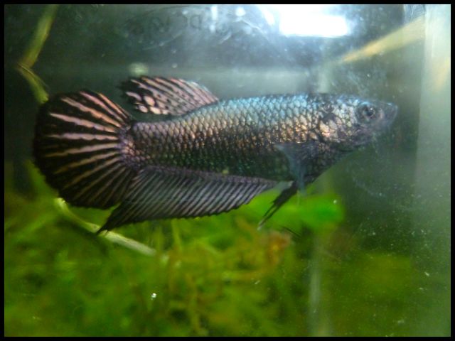 mimi16 0 Posté(e) le 1 janvier 2011 Re tentage avec ses poissons venant tout deux d'un éleveur.Après deux essais, ou j'ai perdu la plupart des alevins de la première semaine jusqu'à 2 ème et demi de je n sais quoi, qui m'a fait que me sont rester que 2 alevins à chaque fois dont minimoys.Donc les parentpondut le 20 decembre, environ 150 bébé qui se porte bien pour le moment.une photo horrible des babys qui grandisse bien pour le momentet de minimoys, qui n'était pas mais alors pas dutout motivé à parader donc des photos sans parade... j'ai tout essayer devant papa, maman, lui mème; mais non je pense que c'est parce qu'il a l'habitude devant mon autre femelle donc lavec les autres c'est celon son bon vouloir il brille sur cella la, justeavec la lumière mème pas de flash... je me rend compte qu'il est un petit peu gros, je sais pas si son motif blanc est du a la pousse ou pas?? Pouvez vous m'eclairer sur la question? Partager ce message Lien à poster Partager sur d’autres sites