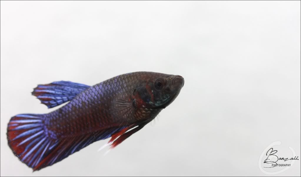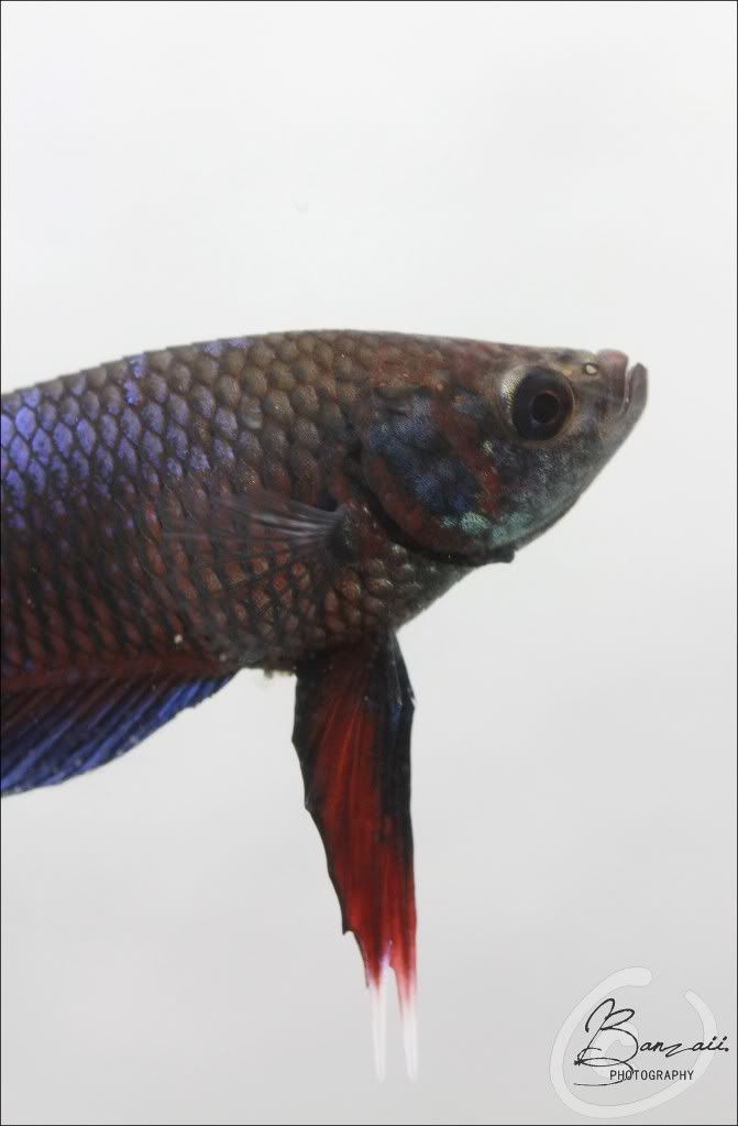 _Banzaii.11 0 Posté(e) le 29 juillet 2012 Bonjour,Après lecture de la rubrique "Génétique", je commence à comprendre bien mieux le fonctionnement des couleurs, et donc leur détermination.De ce fait, je m'essaye aujourd'hui à donner celle d'un des mâles qui vit chez moi, et j'aimerai confirmation de ma proposition.Quelques photographies...Donc !Concernant la couche de rouge, je pense notamment au rouge normal NRNR.Au sujet du bleu, il semblerait qu'il s'agisse de bleu roi, ce qui se traduit par BtBa.L'irisation n'est que partielle sur le corps, mais je pense qu'il s'agit tout de même de l'irisation normale inin.Au final, nous aurons alors quelque chose approchant NRNR BtBa inin.Qu'en pensez-vous ? Partager ce message Lien à poster Partager sur d’autres sites