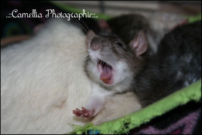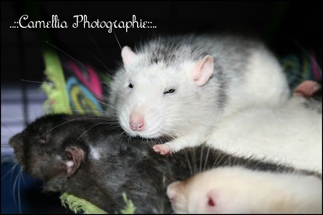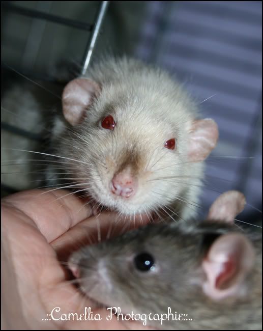 Camellia1 0 Posté(e) le 2 octobre 2011 Merci !! J'adore aussi les siamois! Le seul soucis c'est leur coté : "je ne vois pas rien" , encore kupo ne scanne pas encore trop ! Mais je sais que ce défaut rends parfois le rat peureux à ne rien voir ! Mais la avec l'age , il scanne beaucoup plus ! Parfois il capte même pas que je suis devant lui !! Mon Kupo commence à avoir de gros signe de fatigue, il a plus de deux ans et c'est un petit gabarit issue d'un sauvetage, c'est le dernier survivant de sa portée. Ca se voit bien sur les photos et encore plus en vrai. Le temps passe bien trop vite. Quand j'ouvre les portes c'est plus ou moins ca qui se passe ! Souvent ils sont tous la a attendre à se marcher l'un sur l'autre! lool Partager ce message Lien à poster Partager sur d’autres sites