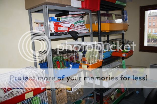 Dawww1 0 Posté(e) le 11 février 2012 Pourtant j'en ai trois de plus avec les maternités Soit 11 cages de souris, 1 cage de Truc et une cage de rats.Il faut que je remonte l'air de jeux, pour le moment elle me sert pour poser la cage de mes vieux rats. La grande cage c'est fini pour eux j'en ai bien peur, elle est trop dangereuse depuis que César à fait un AVC.En attendant les souris sortent sur leur étages d'étagère (les noirs font plus de 80cm de long). Il faudrait aussi que j'achète de nouveaux jouets en bois, surement à Houten ! Je n'ose plus utiliser les anciens après le traitement vermifuge.Edit: et pour l'air de jeux faut que je trouve du plastique pour plastifier le mur, car je vais surement perdre la caution de l'appart à cause de leur caprice à faire pipi contre le mur blanc Partager ce message Lien à poster Partager sur d’autres sites
