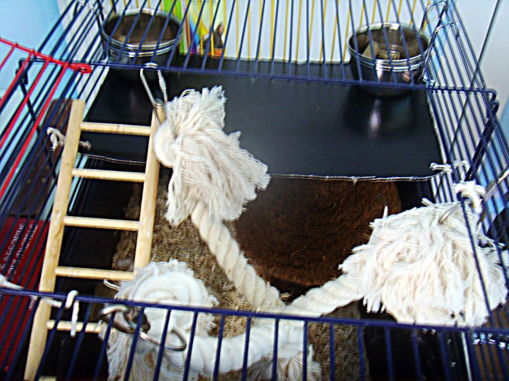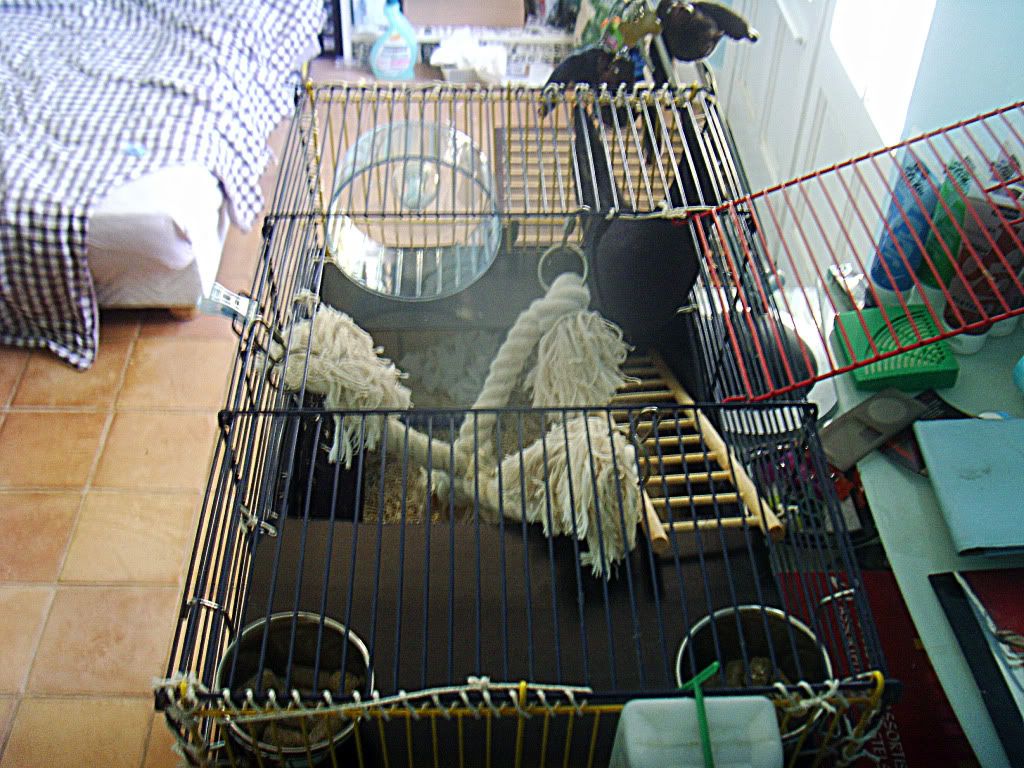 diablo882 0 Posté(e) le 16 août 2010 donc finalement je me retrouve avec cette cage que ma couzine ma donner j'ais rajouter deux etages. 2 etagesdedans il y as :2 rouleau papier toilet1 rouleau sopalin1 hamac1 roue2 gamelles inox1 maison1 jeux de cordes1 corbeille amenager un petit lit et je crois que c'est tout pour le moment !j'utilise de la litiere de chanvre donc voici la cage ! Partager ce message Lien à poster Partager sur d’autres sites