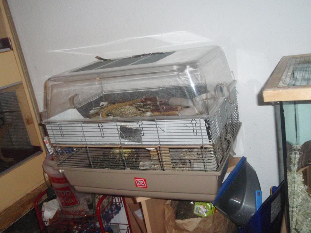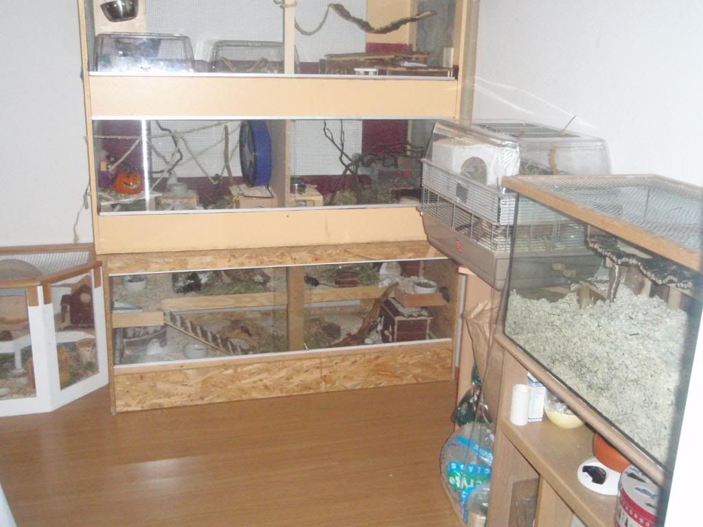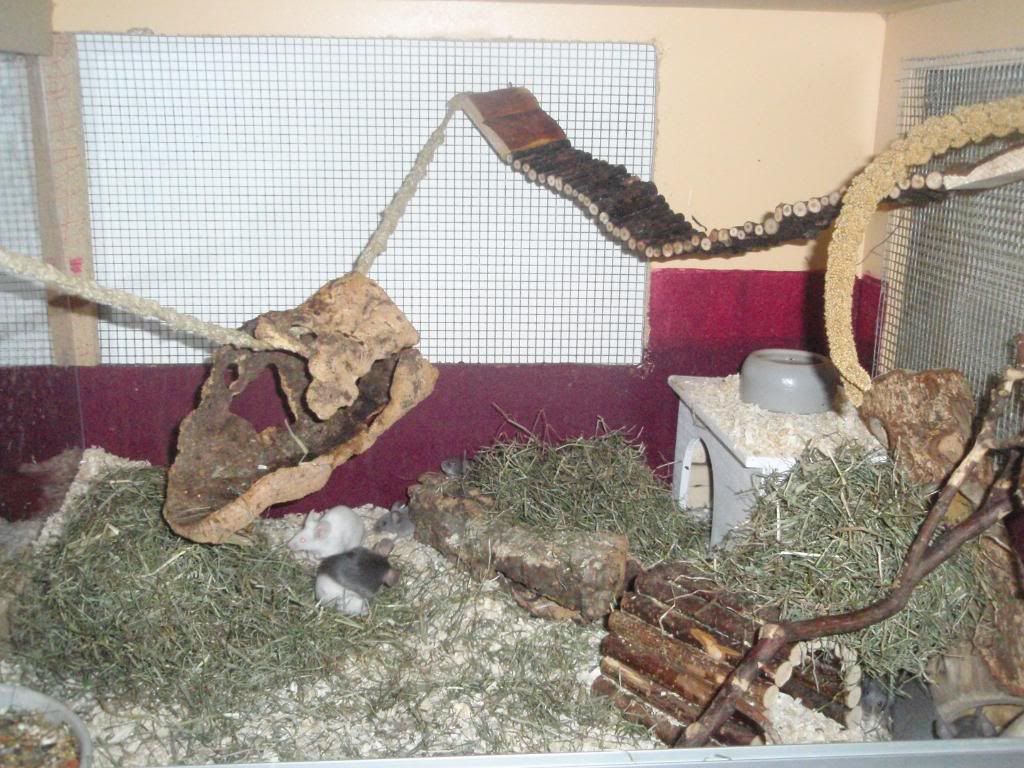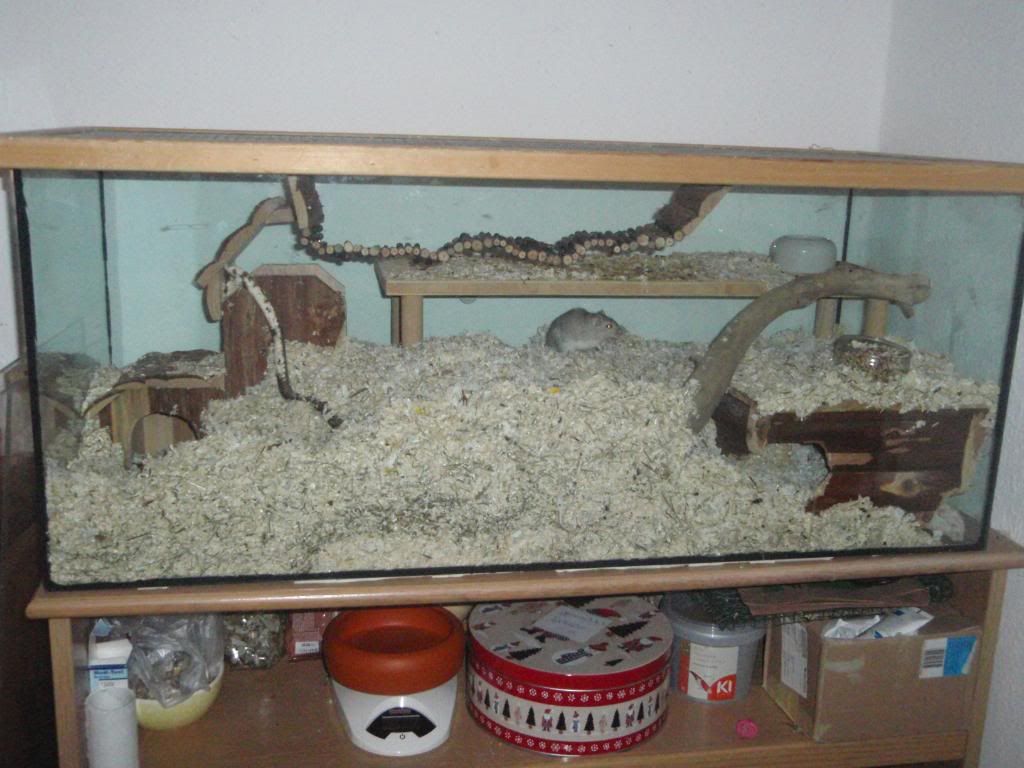 Minimausi85 0 Posté(e) le 15 janvier 2011 here are my mousery. my mices lives together, a big groope of ladys in the big cage. it's 150cm lang, 60cm deep and 70cm high, and the "Etage/Ebene???" is 150 x 35cm .here the tower. it was self made above and in the middle of the tower is fully connected.all 4 chambers can be joined together '. individually they are 70x60xm had 50cm high.Here the females get their puppies.I live there or in a 60x40x40cm dunasome empressions.and the big duna 70x40cm and one "etage/eben"? Partager ce message Lien à poster Partager sur d’autres sites