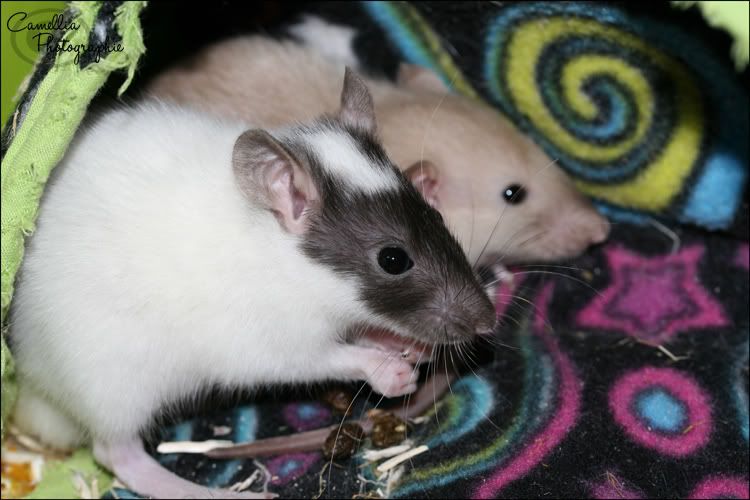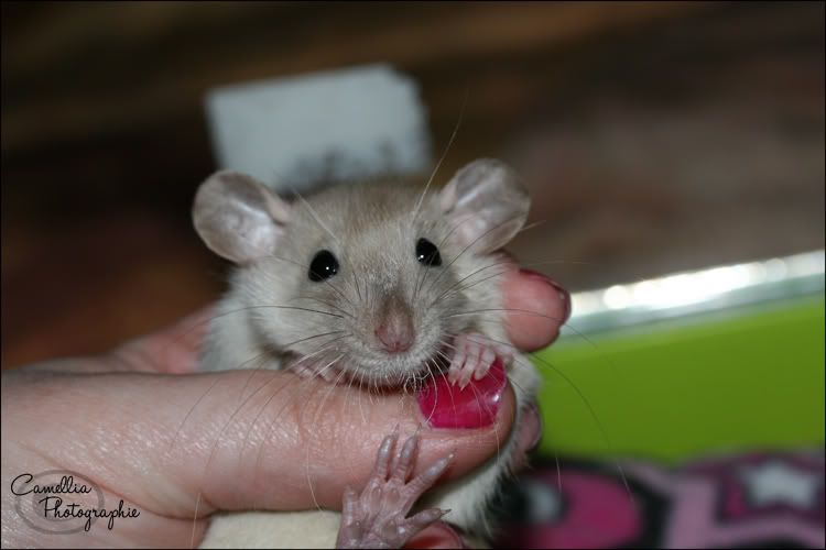 Camellia1 0 Posté(e) le 27 février 2012 Je vais prendre mon courage à deux mains et faire un hommage à mes deux loulous!Vous le savez tous que j'ai perdu Tattoo et Diabolo il y'a peu à quelques jours d'intervalle!Je vais commencer avec Diabolo!Diabolo c'était mon premier loulou bleu , j'avais depuis longtemps l'envie d'avoir un jour un petit mec bleu dans ma troupe! Et en allant adopté Suncé, j'ai vu dans la cage juste à coté, des petites bouilles! Et la je vois passer un petit truc bleu! C'était diabolo !Avec sa micro étoile , et sa petite bouille de bébé, j'ai eu le coup de coeur de suite! Je l'ai réservé aussitôt et je suis venu le chercher quelques semaines après! Diabolo c'était surtout un rat nounours , mon plus gros gabarit chez les males avec une bouille ronde! Un gentil petit nounours! Il avait l'art pour trouver les meilleurs endroit pour dormir, le plus confortablement possible et surtout au chaud! Car sa 1ere passion était bien entendu la sieste! Même en sortie, il courrait partout pour se trouver une cachette pour dormir! Malgré tout c'était un rat très présent, présent pour toutes les sorties et pour des séances de grattouilles! C'était ma bonne bouille!Diabolo allait sur ses 1 an et 7 mois, malheureusement il a eu un AVC et suite à cela son état était vraiment mauvais! Il avait perdu pas mal de faculté et j'ai donc préfère le laisser partir .Il me manque terriblement , mon gros n'est plus la . Sa présence me manque énormément tout comme sa bouille . J'ai vécu une chouette histoire avec lui , et comme à chaque fois j'aimerai que celle ci ne s’arrête jamais. Repose en paix mon Diabolo !Diabolo c'était :Tattoo maintenant! Mon Tattoo c'est aussi un gros coup de coeur , j'ai fais pas mal de kilomètre pour l'avoir , pour le retrouver vivant dans une cage à souris avant maman papa et frere et soeurs! Sur copeaux et comme alimentation des croquettes pour chien! A la place d'être noir il était gris!Il avait un charme fou ce rat, avec sa tête de nouille et son marquage ca faisait de lui un petit lutin! C'était même son petit surnom dans la famille! Mes nièces étaient fan de lui ! C'était mon gros lutin à la tête de nouille! Il manquait jamais de faire une petite léchouille à chaque fois que je mettais ma mains dans la cage! Il était vraiment très présent et adorer pouvoir sortir à toute occasion pour aller faire le fou !Mon Tattoo c'est une grande histoire d'amour, comme je pense avec tous mes rats! Cette histoire ce fini bien vite comme celle avec Diabolo car Tattoo allait avoir 1 an et 6 mois . J'aurais aimer le voir devenir papy .Mon Tattoo me manque terriblement ! C'est un vide énorme dans la cage, qui est limite assez déstabilisant quand on en perd autant en si peu de temps.Mon Lutin repose en paix , tu es parti avec ton pote Diabolo à deux pour le paradis des loulous!Tattoo c'était :Reposez en paix mes loulous! C'est vraiment avec beaucoup de chagrin que j'ai du vous laisser partir! Partager ce message Lien à poster Partager sur d’autres sites