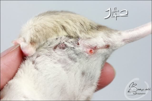 _Banzaii.1 0 Posté(e) le 14 mai 2012 Les nouvelles du jour sont heureusement plutôt bonnes, mais la miss a perdu un peu de poids ces derniers jours. Du coup, elle dispose d'un petit pot de pâté pour chats pour récupérer un peu de force !Pauvre en protéines afin de limiter les insuffisances rénales, c'est un aliment qui convient très bien aux souris âgées sur court terme.Concernant la plaie, elle ne devrait pas tarder à être totalement cicatrisée, malgré un réouverture partielle il y a quelques jours. Je continue de désinfecter et de lui donner son antibiotique jusque mercredi, et avisera par la suite s'il est nécessaire de continuer à désinfecter.Spoiler:Les photographies sont toujours visibles sur mon site internet !Globalement, Kara se porte bien, et s'est d'ailleurs même jetée sur la roue lors d'une sortie sur l'aire de jeu. Elle est encore gênée par la suture, mais semble ne pas souffrir. Partager ce message Lien à poster Partager sur d’autres sites