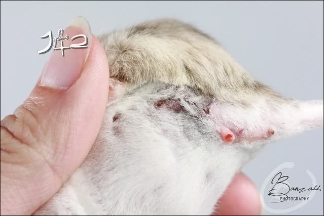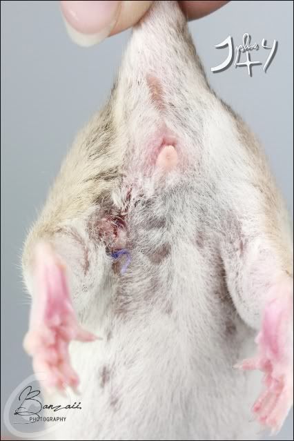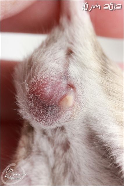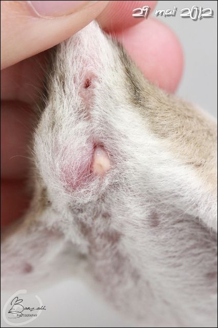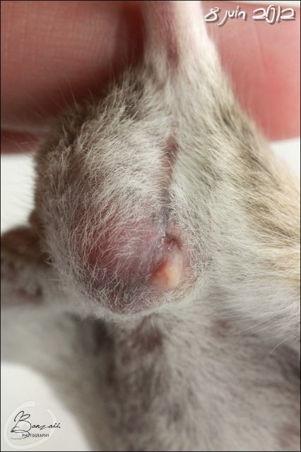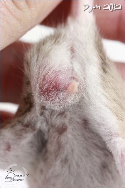 _Banzaii.1 0 Posté(e) le 18 mai 2012 Dix jours après son opération, Kara se porte très bien, et prends d'ailleurs un malin plaisir à retourner toute sa cage de convalescence... Qui commence d'ailleurs à devenir obsolète vu que la plaie est maintenant presque totalement refermée !Spoiler:La photographie est toujours visible sur mon site internet.Sans oublier les petits pipis automatiques et en plus pris sur le fait dans la gamelle d'eau qui occasionnent un renouvellement de l'eau presque trois fois par jour... mais finalement, c'est plutôt assez drôle à voir sur le coup !Bref, comme vous pouvez le voir, les nouvelles sont vraiment plutôt bonnes... et je pense que la réintégration avec les copines ne devrait pas tarder et pourrait même se faire d'ici une semaine environ. La plaie ne semble pas encore totalement refermée, et quand bien même ce serait le cas, je préfère attendre que les fils résorbables ne s'enlèvent d'eux-même totalement.Elle a toujours beaucoup d’appétit pour le pâté pour chats, mais a aussi un peu de mal à reprendre du poids... Elle aime particulièrement sortir, tout autant qu'avant son opération, et ne demande qu'à faire de la roue. Partager ce message Lien à poster Partager sur d’autres sites