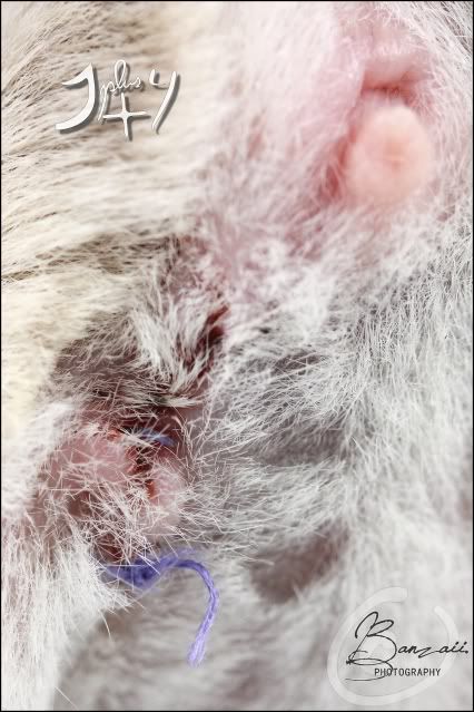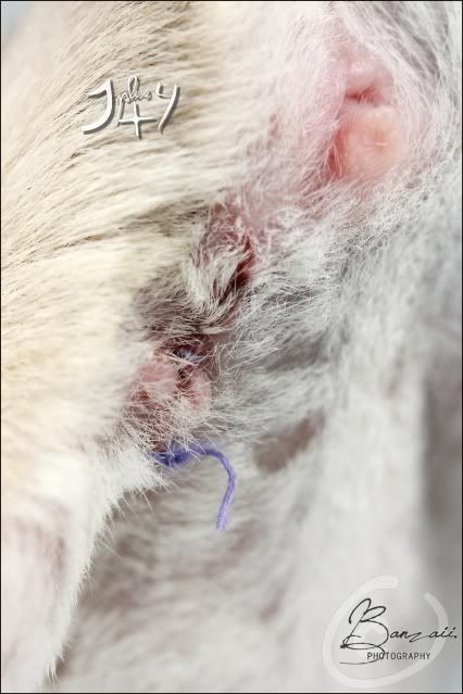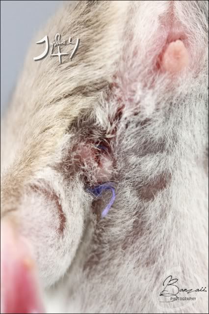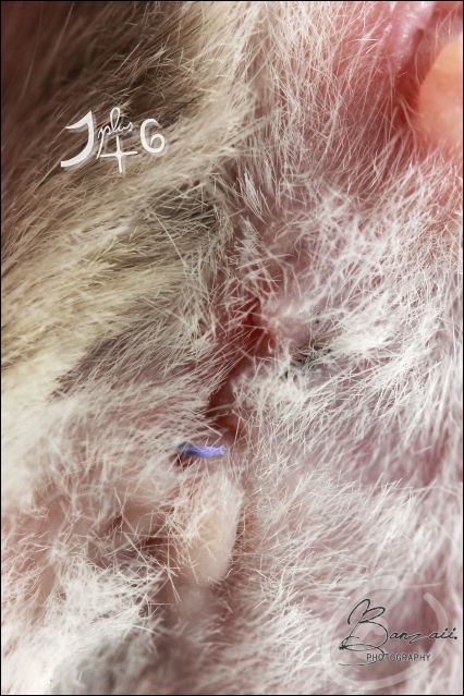_Banzaii.1 0 Posté(e) le 9 mai 2012 Ayant loupé le rendez-vous à 17h30 avec mon vétérinaire habituel à dix minutes près, j'ai finalement été contrainte d'en prendre un plus tard avec un vétérinaire que je n'avais encore jamais vue !Rien de bien difficile de toute façon, puisque le rendez-vous consiste à me faire un compte rendu bref de l'opération chirurgicale, ainsi que m'expliquer à nouveau en quoi consistent les soins post-opératoires.Donc, miss Kara se porte très bien, et a été très sage durant sa convalescence puisqu'elle n'a pas touché à un seul de ses fils... en espérant qu'il en soit de même jusqu'à la visite de contrôle ce samedi !Elle est actuellement en train de se reposer dans sa cage de convalescence, et ce jusqu'à ce que la plaie soit totalement cicatrisée. Mademoiselle a donc droit à un petit traitement de faveur, en ayant à disposition mélange de graines et lait pour chaton coupé avec de l'eau, ainsi qu'à sa propre petite maison bourrée de papiers essuie-tout !Il semble cependant qu'elle se soit abimé la papille urinaire, qui semble actuellement encore gonflée ; peut-être une des conséquences de l'opération. A savoir qu'elle urine et défèque correctement, se nourrit et s'abreuve avec beaucoup de motivation.La plaie est elle, très propre, et en très bonne voie de cicatrisation. Spoiler:Le travail de chirurgie aura été, comme toujours, de grande qualité ! Partager ce message Lien à poster Partager sur d’autres sites
