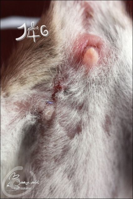 _Banzaii.1 0 Posté(e) le 7 mai 2012 Mercredi soir, lors de la sortie quotidienne de mes petites femelles, j'ai repéré une excroissance étrange au niveau de la face intérieure de la patte postérieure gauche de DFM Kara. Du lendemain, la vérification (inutile) chez mon vétérinaire n'a pas loupée, il s'agit bel et bien d'une tumeur mammaire.Spoiler:Il est cependant impossible d'en connaitre la nature, mais en raison du récent problème viral lié à un adénocarcinome apocrine chez Pumpkin des Alérions, je ne peux me permettre de passer à côté de l'histologie.Sa disposition actuelle est délicate, mais l'ablation reste possible avec de grandes chances de réussite. Elle sera effectuée aujourd'hui.Je vous tiens au courant. Partager ce message Lien à poster Partager sur d’autres sites