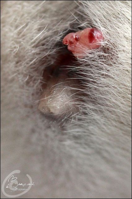 _Banzaii.1 0 Posté(e) le 15 juin 2012 Depuis déjà deux semaines, j'ai remarqué une sorte d'excroissance juste au niveau de la vulve de Midnight. A l'heure actuelle, elle a légèrement grossit, mais rien d'alarmant. Seulement, ça reste quelque chose que je n'avais encore jamais rencontré, et ça m'inquiète un peu du coup.Les photographies ne le montrent pas très clairement, mais il est certain qu'il ne s'agit pas d'un prolapsus...Après avoir contacté mon vétérinaire par mail, il a jeté un œil sur les photographies ci-dessous, et voici ce qu'il en pense :De premier abord, l'excroissance me semble plutôt ressembler à une verrue ou quelque chose de bénin.Des idées de votre côté ? Partager ce message Lien à poster Partager sur d’autres sites
