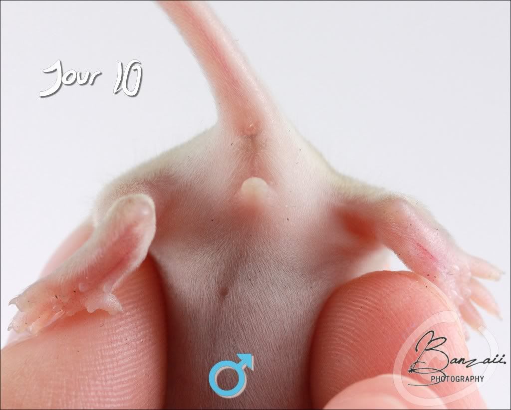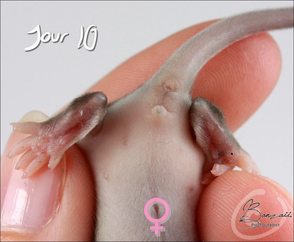 romath 0 Posté(e) le 14 octobre 2012 Bonjour,Ma portée Kinder à 14 jours aujourd'hui. J'ai tenté le sexage... se fût un échec cuisant ! Que des doutes et aucune certitudes J'ai commencé par chercher dans "les souris pour les nuls" et j'ai trouvé ceci :Je pensais être partie sur de bonnes bases, mais je suis arrivé à la conclusion que :- je trouve 4 mâles pour 5 femelles ,- les petits sont peut être encore trop jeune pour un sexage sûr,- la photo d'explication conserne les adultes (?)Bref, je vous met les photos au cas ou 123456789Por moi, 4 mâles en 4,6,8 et 9 Partager ce message Lien à poster Partager sur d’autres sites