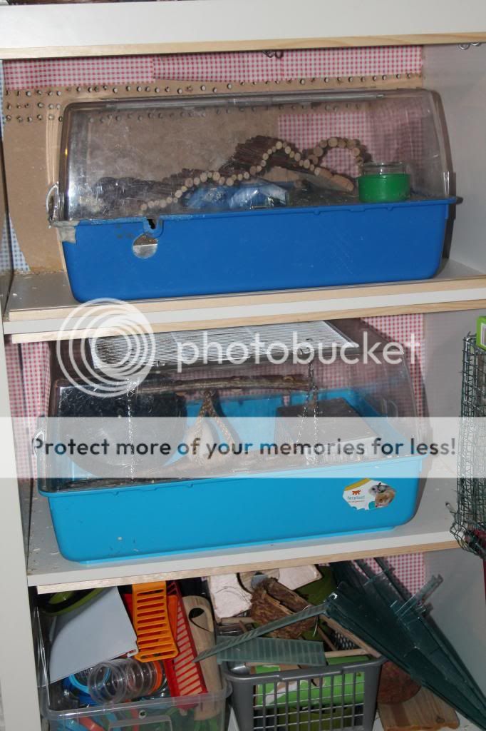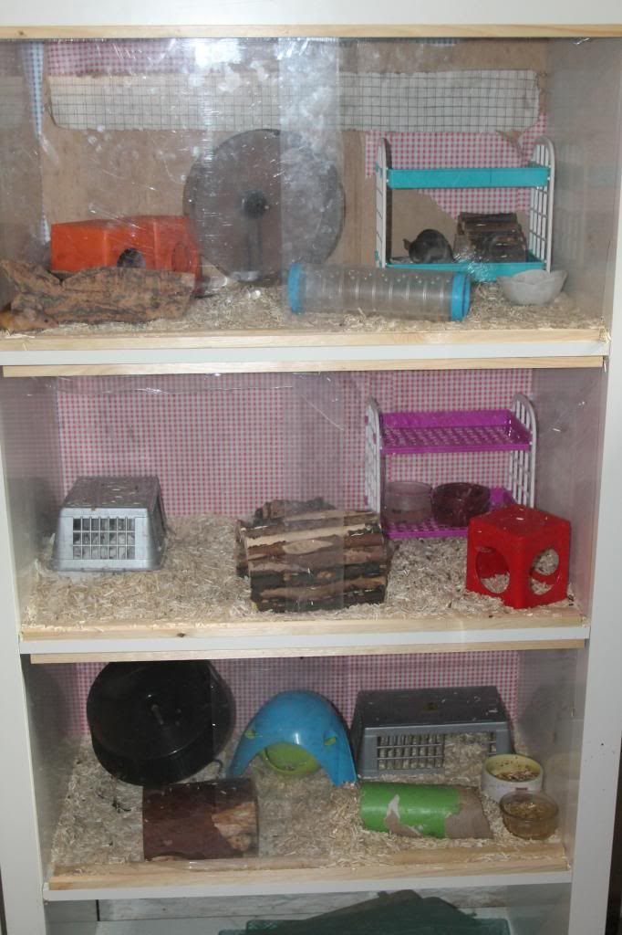 bluely 0 Posté(e) le 30 juin 2013 Pour le moment chez Les Rois Soleil :*Femelles ( et 1 mâle castré)1)Grande cage en bois avec 2 étages (120 x 60 x 60 cm + 2x 120 x 25 cm)=> SDV Aude,SDV Undercover,LRS Ladybird,LRS Stay By Me,Ayronna's Fiona,HVR Bagheera,LRS Mia (nom provisoire car elle va être adoptée),Cats Blanche-Neige2) Bac ik*éa 80 x 50 x 50 cm=> OP Sleeping Beauty,LRS Goddess Of Fire,3x rump choco,rump noire,noire,choco (ses filles)Mâles en groupe :1) cage verte ( 50 x 35 x 25 cm)=> LRS Titi (à l'adoption) et DFM Mozart2) bac en plastique Blok*ker ( 70 x 40 x 30 cm)=> OP Chopin et SIL Beethoven3) Mini duna (55 x 33 x 25 cm)=> SDV Superstar ,LRS Lucky Luck (à ma soeur) + sable (à l'adoption) et choco (Malick)Mâles seuls :1) Mini duna=> LRS Fire2) Mini duna=> HVR Simba3) et 4) cage étagère iké*a 2 étages (chaque étage = 70 x 35 x 25 cm)=>SDV Timon=> SDV Pumbaa5) Cage gerbille sav*ic (70 x 35 x 40 cm)=> Pleasur6)Cage maison étagère iké*a (60 x 50 x 50 cm )=> AtlasProjet pour la semaine du 8 au 14 juillet :Améliorer mon ancienne étagère : Le projet : Partager ce message Lien à poster Partager sur d’autres sites