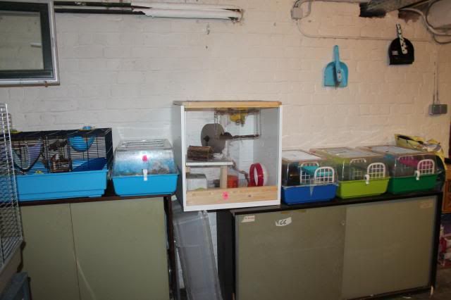 bluely 0 Posté(e) le 9 avril 2013 Quelques photos de ma pièce à souris :Le groupe de 8 ( 6 femelles et 2 mâles castrés ) et à côté ,Fire.En haut,la cage d'Igaï et en bas,celle de Simba.La cage d'Atlas Les bébés et les souris ramenées d'Houten (1 groupe de mâles et un groupe de femelles) sont dans des bacs ikea de 80 cm x 50 cm. Partager ce message Lien à poster Partager sur d’autres sites
