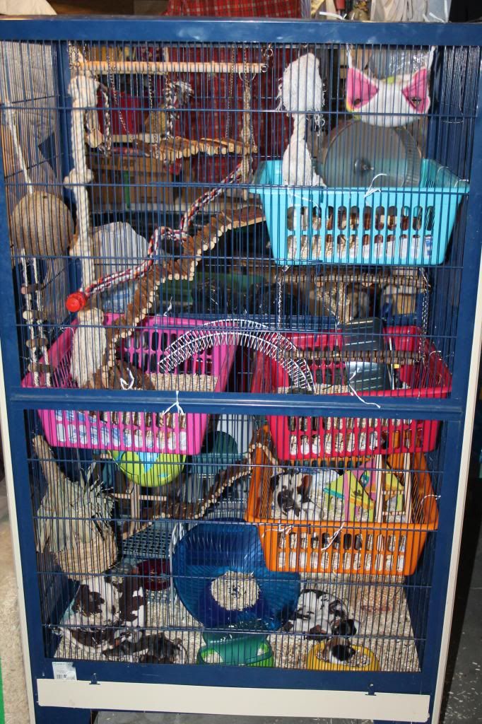 bluely 0 Posté(e) le 28 décembre 2012 Comme la cage en bois de mes 11 loupiots sentait très très fort,j'ai décidé de changer et d'opter pour quelque chose à la fois spacieux,relativement facile à nettoyer et plus ou moins beau.Le seul hic,ca prend beaucoup de place...Place aux photos (il y a des curieux sur les photos...Normal,ils découvrent leur cage et,notez,elle est déjà en bordel...) :La cage mesure 120 cm x 80 cm x 60cm + un étage de 80cm x 60cm. En fait,c'est une volière que j'ai récupéré et j'ai décidé de la mettre à l'horizontale,plutot qu'à la verticale...Il y a donc deux bacs de la taille presque exactes dedans pour un néttoyage beaucoup plus facile et éviter que les patounes des loulous soient sur les grilles.La cage de Tara,Shenzi et Fiona à gauche (duna multy) et la cage de Fire à droite (mini duna) (PS : entre temps,je me suis achetée une étagère chez brico beaucoup plus pratique) :PS : Tous Les Rois Soleil sont passés sur de la litière de bouchons de paille compressés. Partager ce message Lien à poster Partager sur d’autres sites