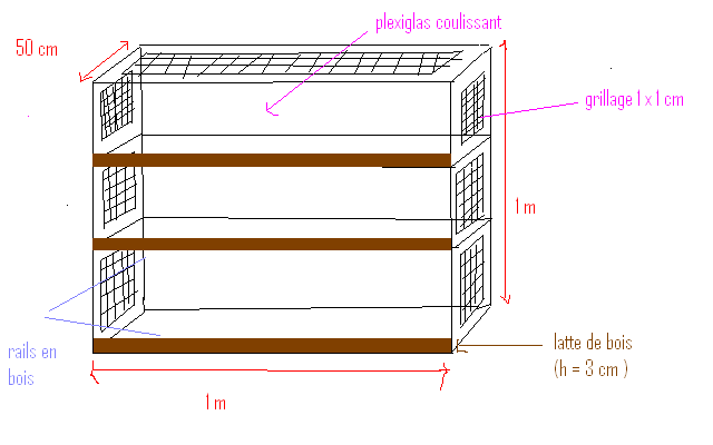 bluely 0 Posté(e) le 6 février 2013 Ma nouvelle cage faite maison (étage du haut = Fire ; du milieu = Simba ; du bas = Igaï ) :La cage de mon grand groupe (13) : Partager ce message Lien à poster Partager sur d’autres sites
