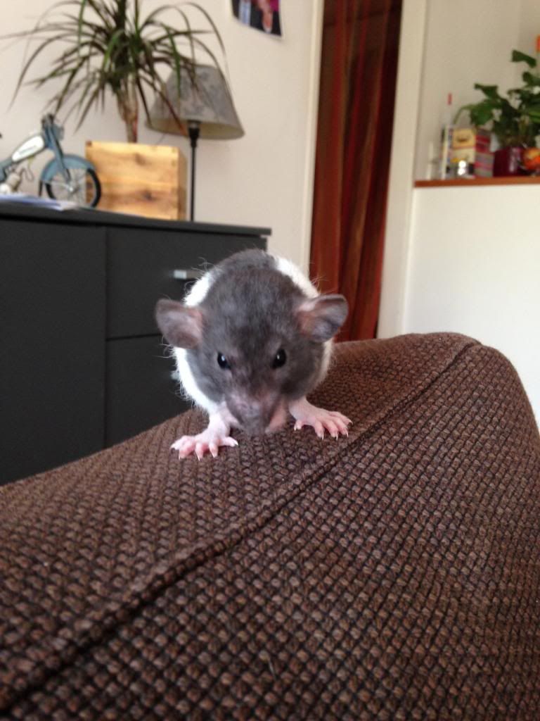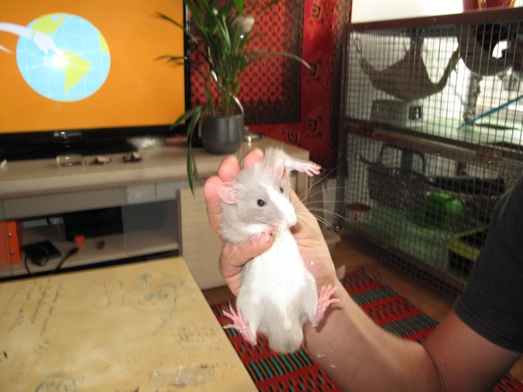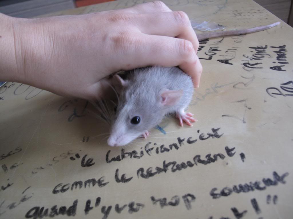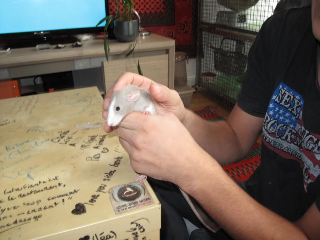 Orfée11 0 Posté(e) le 15 avril 2014 bonjour à tous, je donne des nouvelles de ma troupe de couillus : tout le monde va bien, Mathieu et Maxime sont les dominants, mais il y a assez peu de bagarre et une bonne entente générale. Pas de problème de santé particulier à part un abcès sur l'abdomen chez Mathieu que j'ai vidé sans plus de complications. à l'occasion d'Houten mon homme a craqué sur un nouveau bébé, nous avons donc maintenant 6 ratoux à la maison. voici donc Marvel, une petit bébé de 5 semaines, noir hooded dumbo rex, une bouille d'amour qui prend doucement ses marques à la maison et rejoindra le groupe à la fin de sa quarantaine. il est assez curieux donc pas facile à prendre en photo car il ne reste pas longtemps en place je ferai des photos du reste du groupe dans la semaine Partager ce message Lien à poster Partager sur d’autres sites
