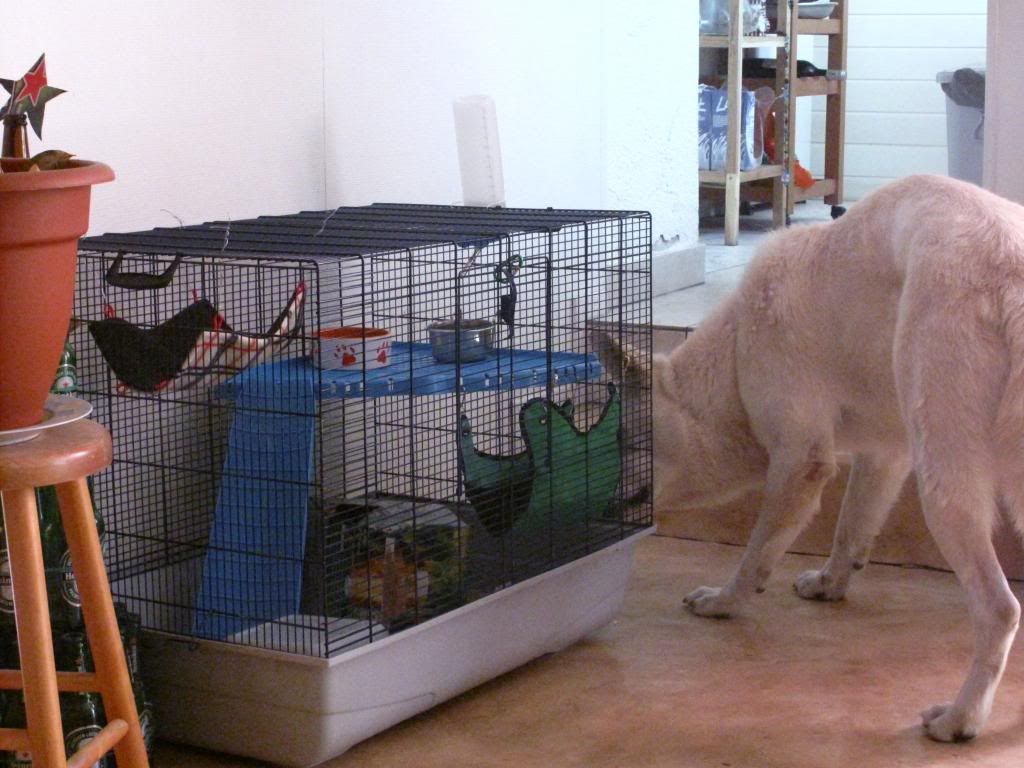Orfée11 0 Posté(e) le 22 novembre 2013 des nouvelles de notre petite troupe, nous avons du faire castrer Murtagh car il s'est malheureusement montré trop agressif avec les deux petits en les mordant assez sévèrement et a plusieurs reprises aujourd'hui tout va bien les quatre vivent ensemble et s'entendent très bien, quelques petites querelles sans gravités mais c'est parfaitement normal dans un groupe de mâles. ils ont tous un caractère différent et font notre bonheur, nous les appelons "nos enfants" . dans le hamac : distribution de bledine du dimanche :et ce soir c'était coquillettes/oeuf/courgette pour tout le monde :et le clin d'oeil de Murtagh : Partager ce message Lien à poster Partager sur d’autres sites
