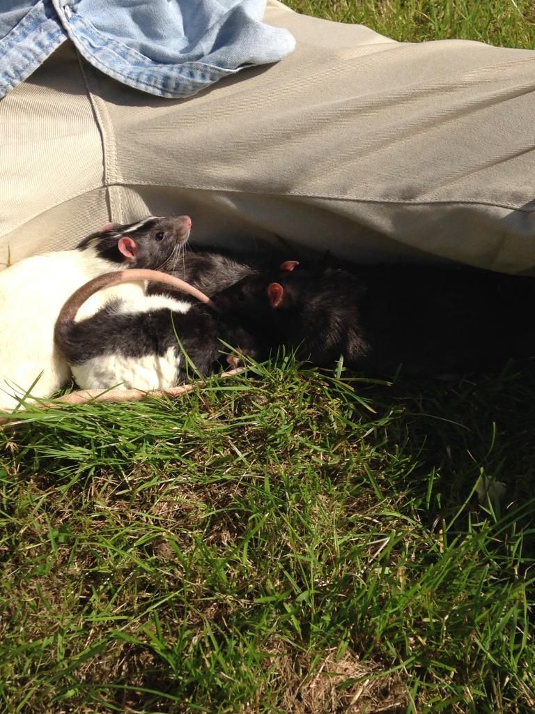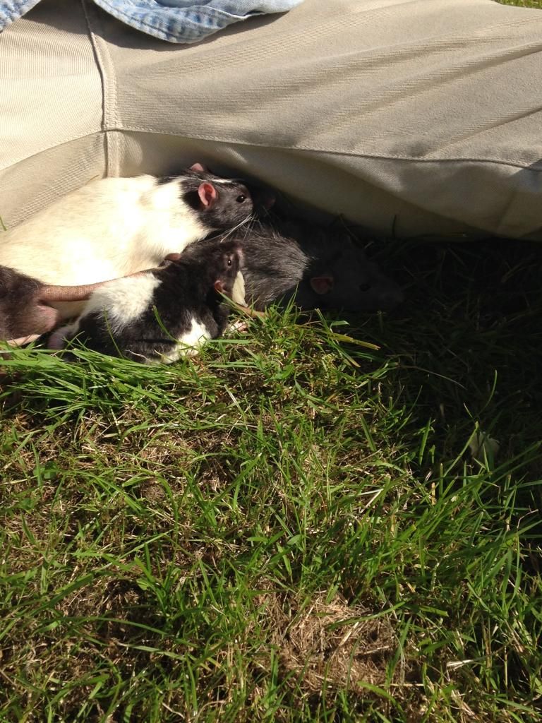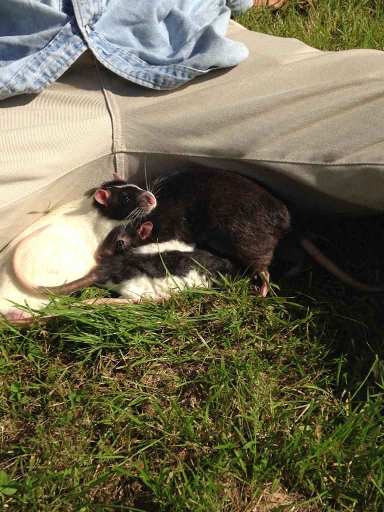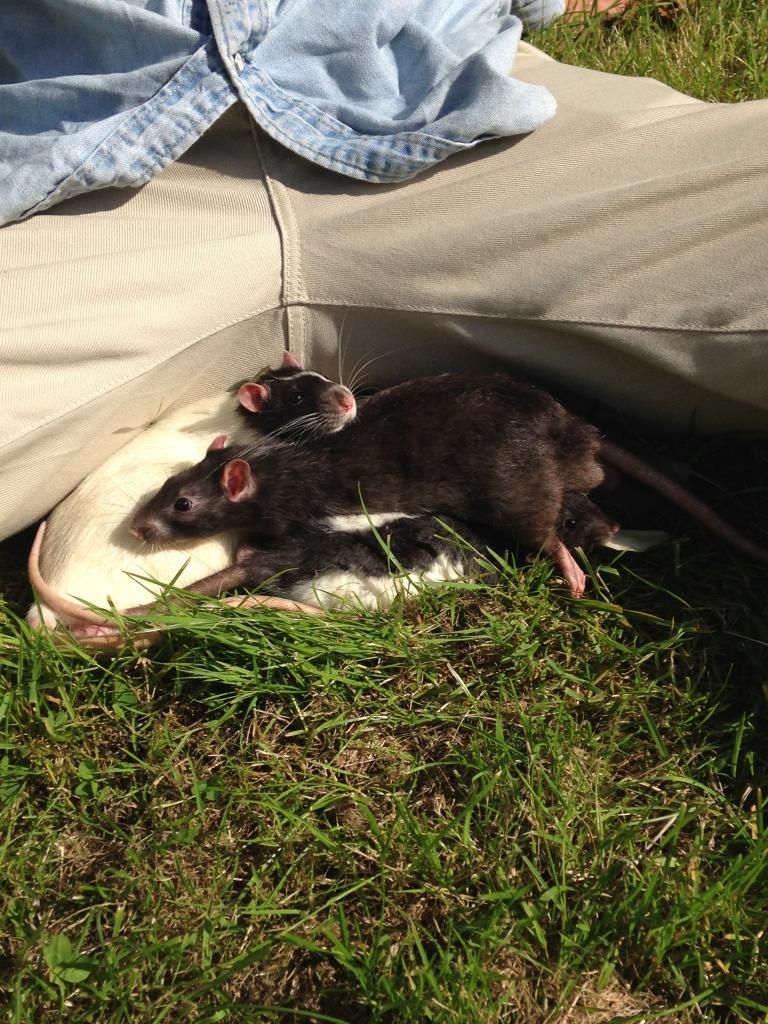 Orfée11 0 Posté(e) le 29 mai 2014 les ratoux vont bien, ils ont surmontés la perte de Murtagh et Merlin mieux que nous. je mets des photos faites aujourd'hui pendant la promenade au parc, donc pas de photos individuelles et dans leur super nouvelle maison (royale savic) Partager ce message Lien à poster Partager sur d’autres sites