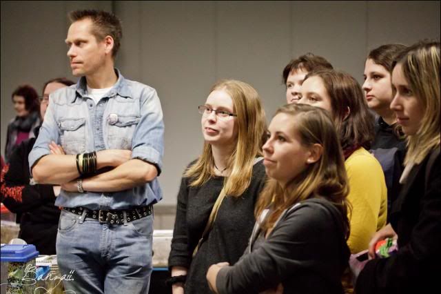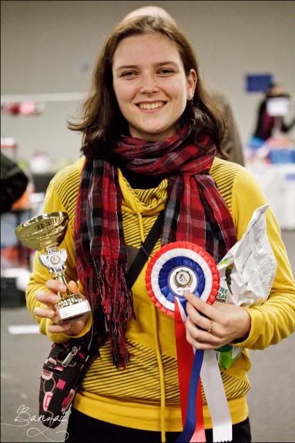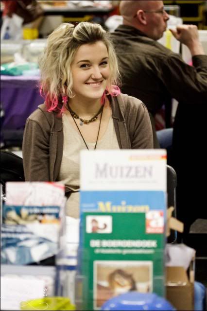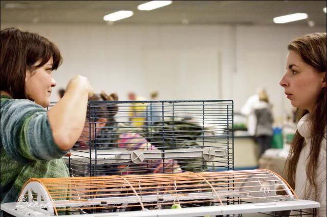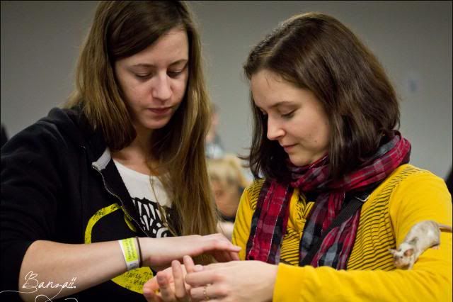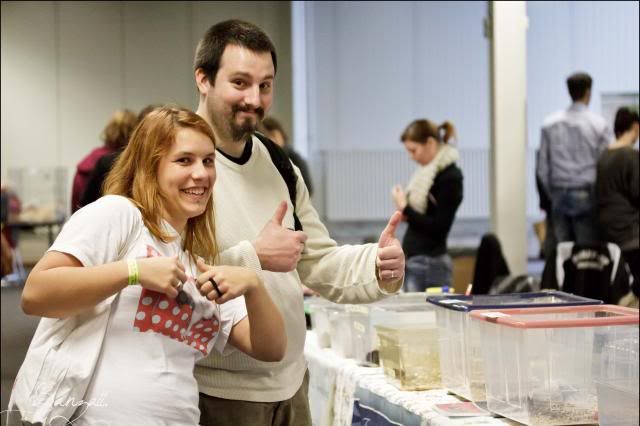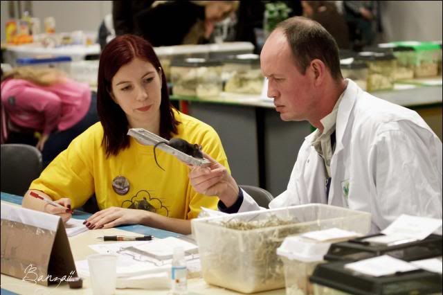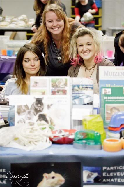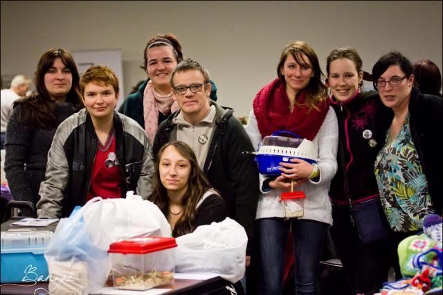 _Banzaii.1 0 Posté(e) le 2 décembre 2013 Après une journée toujours riche en papotages et surtout en craquages pour certains et certaines, il est temps de vous raconter un peu la journée... en images ! On commence donc par le stand de l'A.F.A.R., adapté en quelque sorte au Néerlandais car nous proposons également quelques livres dans cette langue.Notez que nous proposons aussi notre calendrier 2014, pour les intéressés !Avec Coralie qui n'a pas décroché du stand, et qu'on remercie !De même que Rafff, qui nous a fait toujours le plaisir de sa présence et qui nous amuse toujours autant !On continue sur l'information au public... portant ici sur les chinchillas, avec Rosalie !Et puis... on se laisse aller aux craquages, avec François et Mystigrie !Ou encore aux inspections en long, large et travers, avec Orfée et yuya.Pendant que d'autres en profitent pour faire les pitres devant l'objectif !Ou rester plus timide en esquissant un petit sourire...A moins de faire les starlettes !Alors que pendant ce temps, du côté des Shows...... certaines semblent malgré tout bien rigoler également !Finalement, on se remet au sérieux et on replonge dans le jugement, avec Lee et Serious Moonlight !Ce que font tout aussi bien les autres juges d'ailleurs.A la fin de la journée, c'est alors René qui lance le coup d'envoi des remises de prix !Et il sait tenir en haleine les participants !Comme d'habitude, Nadine (éleveuse de hamsters, souris) repart avec un prix et un super sourire !Lambert, que nous voyons de plus en plus présent (éleveur de souris) sur Houten au fur et à mesure des années.Serious Moonlight qui nous fait la joie de ramener un prix hamsters supplémentaire à l'A.F.A.R. !Mais également yuya, qui gonfle le nombre de prix souris, qui commence à prendre pas mal d'ampleur !Et puis on termine en beauté avec le coup de cœur du jury pour la souris de yuya !Prochain Houten le 13 avril 2014 ! Partager ce message Lien à poster Partager sur d’autres sites