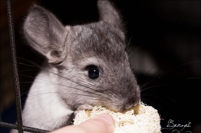 _Banzaii.1 0 Posté(e) le 16 octobre 2013 Aquarelle, demoiselle chinchilla White Ebony, née le 23 juin 2013, m'a définitivement fait craquer la semaine dernière.Elle vient de l’Élevage Chincholla situé sur Vieux-Waleffe en Belgique, près de Liège.Suite à une garde de 5 chinchillas pendant une semaine, j'ai eu le temps de découvrir encore plus le chinchilla et surtout la miss qui était disponible à l'adoption. Finalement, ce fut le gros coup de foudre. A la fois câline et curieuse, elle aime explorer et fait preuve d'un certain entêtement lorsqu'elle sait que certaines zones de sortie lui sont interdites. Partager ce message Lien à poster Partager sur d’autres sites