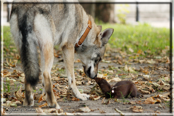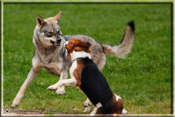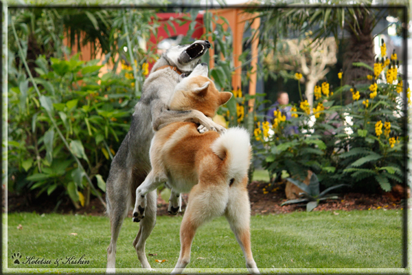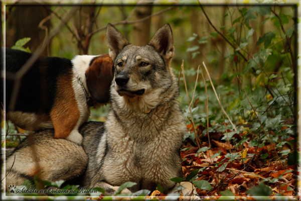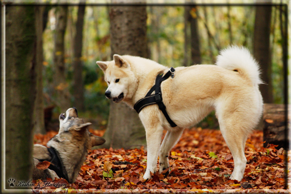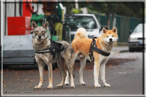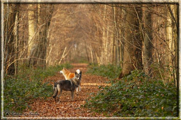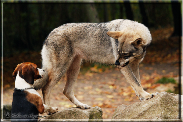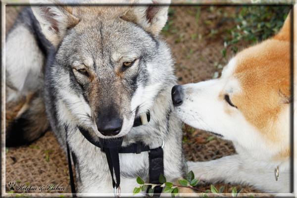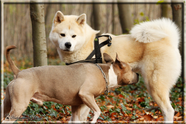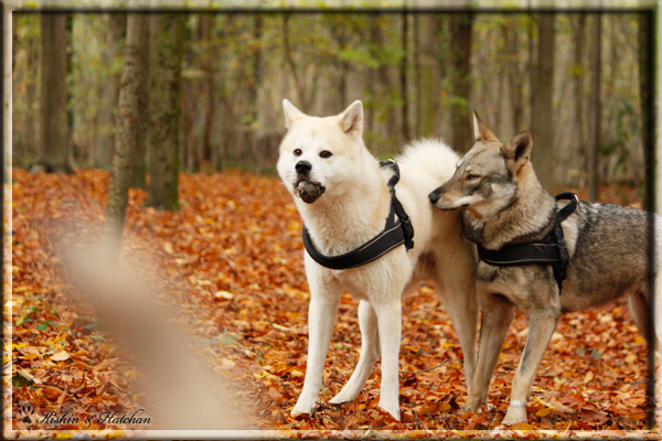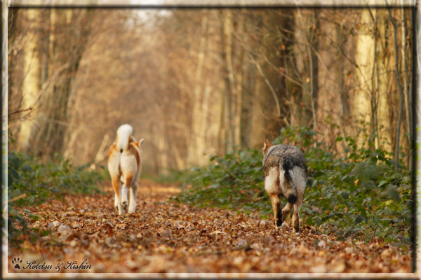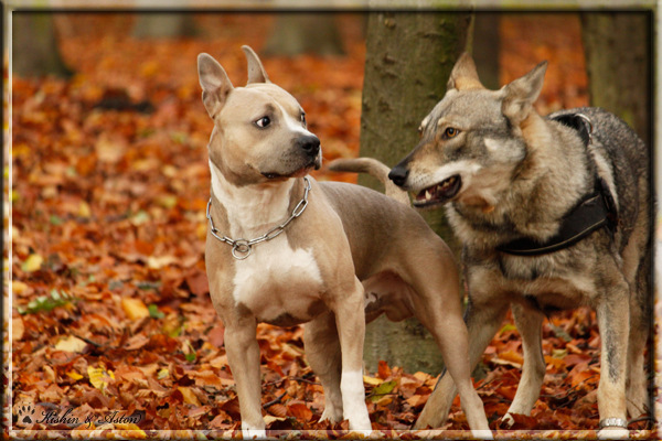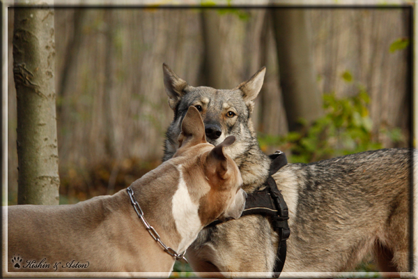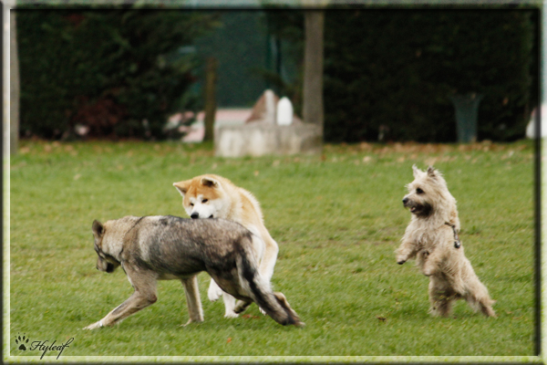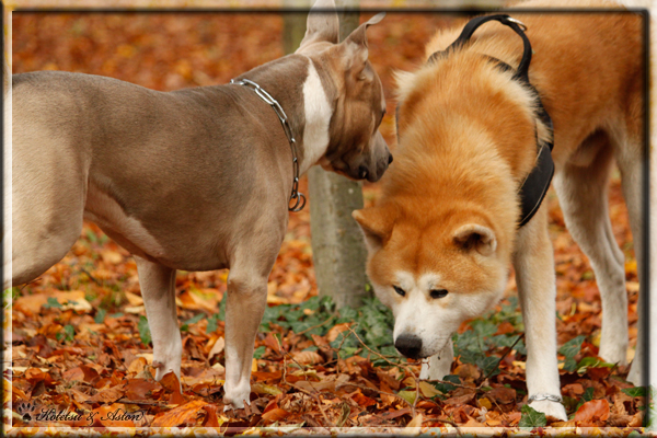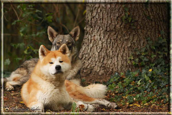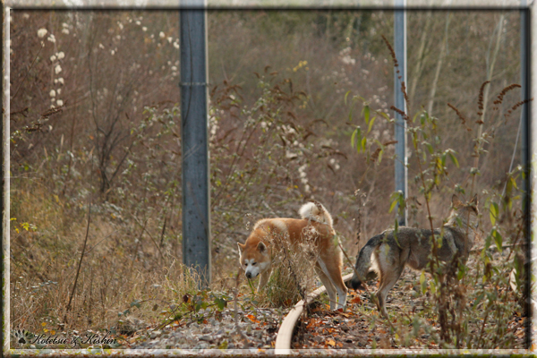 Okikurumi 0 Posté(e) le 5 novembre 2013 Comme matériel photos j'utilise le Canon EOS 500D avec EFS 55-250 et 18-55. Je n'ai pas vraiment une meute, j'ai 2 chiens : 元 小鉄琉 オキクルミ & 砂漠の狼の鬼神元 小鉄琉 オキクルミ : Gen Kotetsuru Okikurumi ou Kotetsu qui signifie petit fer砂漠の狼の鬼神 : Sabaku no Ookami no Kishin qui signifie féroce déesse/divité, la louve du désert.Kotetsu est un mâle, né le 05/07/2011 et 'adopté' à 10semaines. Akita Inu roux fils de D'Taishi Go of Kamino Ken et D'Tenshi Chiyo Go of Ikenohatade.https://www.facebook.com/ChienRaceAkitaInuKotetsu?fref=tsKishin est une femelle, né le 06/02/2012 et 'adopté' à 1ans le 06/02/2013. Chienne louve de Saarloos fauve charbonnée, Fille de Antibes Azur de Louba-Tar et Sun Gifu Fidji.https://www.facebook.com/pages/%E7%A0%82%E6%BC%A0%E3%81%AE%E7%8B%BC%E3%81%AE%E9%AC%BC%E7%A5%9E-Sabaku-no-Ookami-no-Kishin/530701190303742?fref=tsLes autres sont des chiens d'amis, des pensions ou des replacements. Le Cairn terrier est une pension, je trouve que ce sont vraiment des bons chiens les terriers avec un sacré carafon, vifs et réceptifs pour peu qu'on se donne la peine de les éduquer correctement. Avis personnel mais les chiens dits primitifs sont bien plus fascinant, il demande une autre surveillance, une autre attention, un autre travail pour le lien et l'obéissance ..etc.Gérer une meute ce n'est pas si compliquer si tu es en osmose avec et que tu as de bons "éléments" pour l'équilibre de celle-ci, puis biensur que tu as la capacité de gérer et guider tous ce petit monde. Partager ce message Lien à poster Partager sur d’autres sites