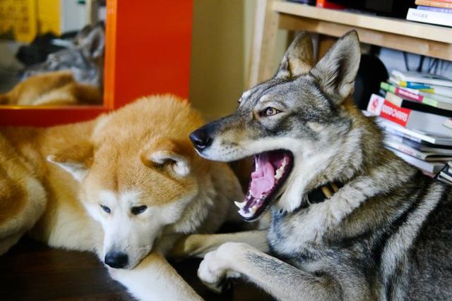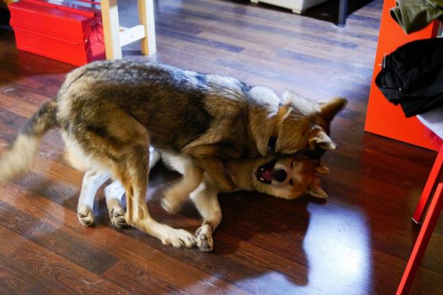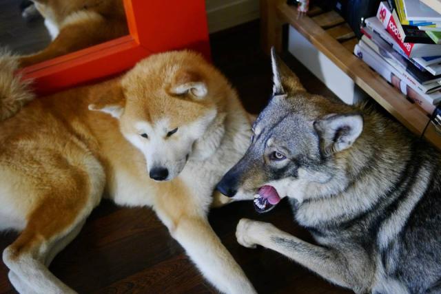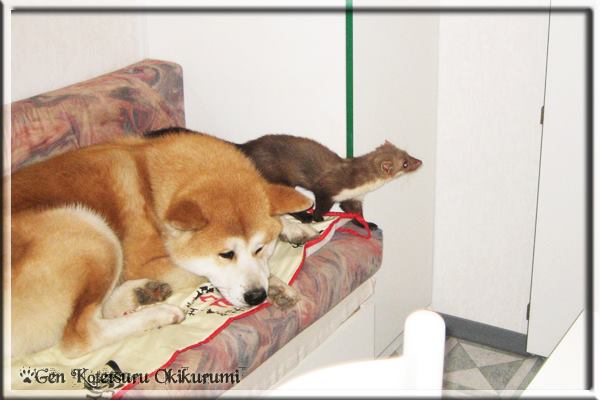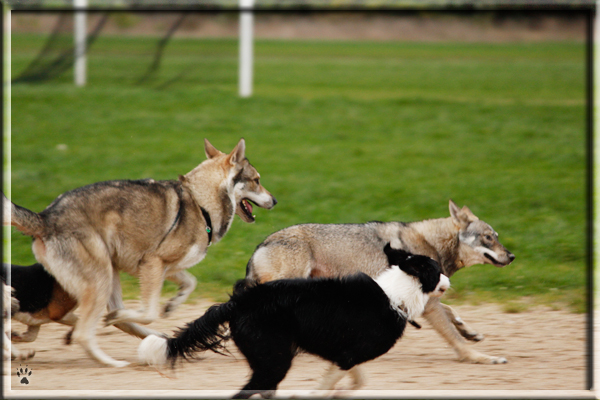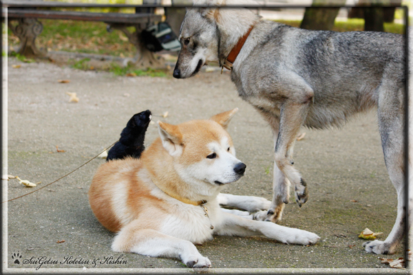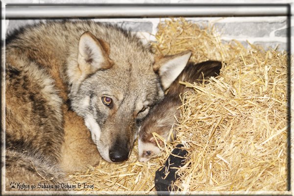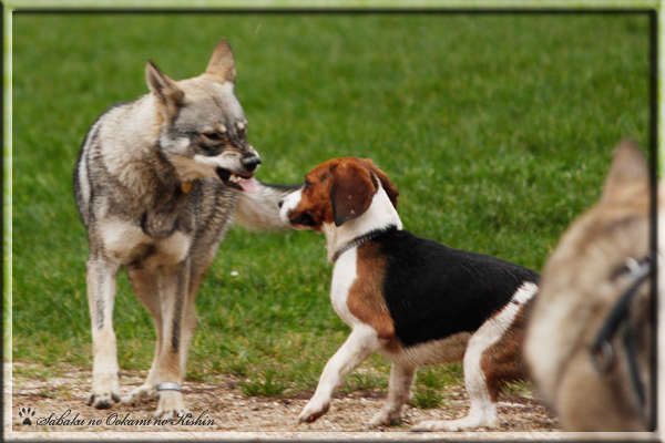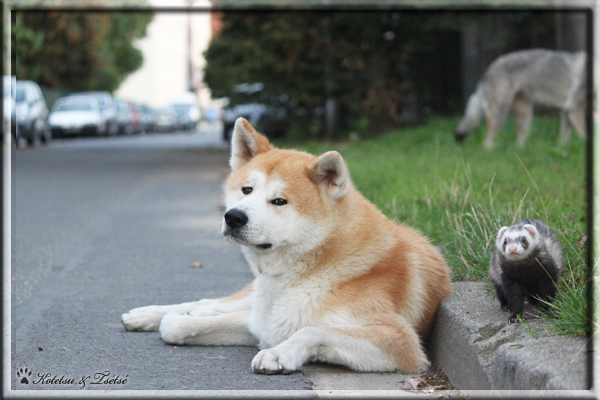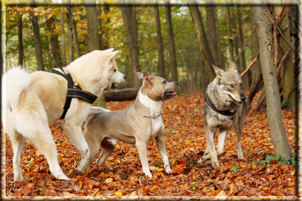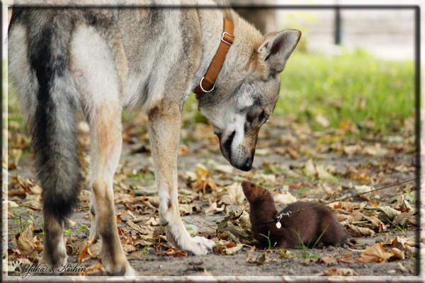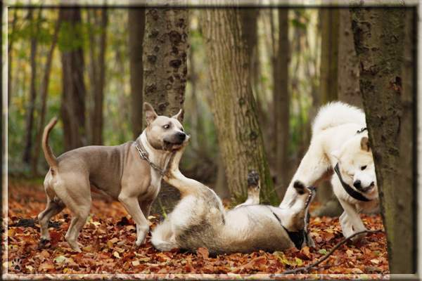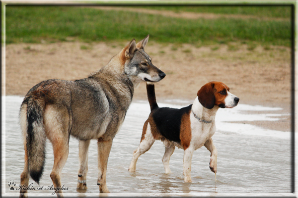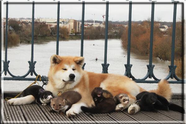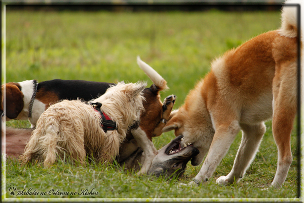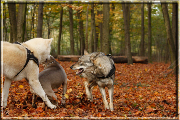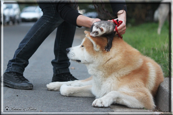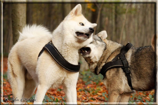 Okikurumi 0 Posté(e) le 5 novembre 2013 Comme matériel photos j'utilise le Canon EOS 500D avec EFS 55-250 et 18-55. Je n'ai pas vraiment une meute, j'ai 2 chiens : 元 小鉄琉 オキクルミ & 砂漠の狼の鬼神元 小鉄琉 オキクルミ : Gen Kotetsuru Okikurumi ou Kotetsu qui signifie petit fer砂漠の狼の鬼神 : Sabaku no Ookami no Kishin qui signifie féroce déesse/divité, la louve du désert.Kotetsu est un mâle, né le 05/07/2011 et 'adopté' à 10semaines. Akita Inu roux fils de D'Taishi Go of Kamino Ken et D'Tenshi Chiyo Go of Ikenohatade.https://www.facebook.com/ChienRaceAkitaInuKotetsu?fref=tsKishin est une femelle, né le 06/02/2012 et 'adopté' à 1ans le 06/02/2013. Chienne louve de Saarloos fauve charbonnée, Fille de Antibes Azur de Louba-Tar et Sun Gifu Fidji.https://www.facebook.com/pages/%E7%A0%82%E6%BC%A0%E3%81%AE%E7%8B%BC%E3%81%AE%E9%AC%BC%E7%A5%9E-Sabaku-no-Ookami-no-Kishin/530701190303742?fref=tsLes autres sont des chiens d'amis, des pensions ou des replacements. Le Cairn terrier est une pension, je trouve que ce sont vraiment des bons chiens les terriers avec un sacré carafon, vifs et réceptifs pour peu qu'on se donne la peine de les éduquer correctement. Avis personnel mais les chiens dits primitifs sont bien plus fascinant, il demande une autre surveillance, une autre attention, un autre travail pour le lien et l'obéissance ..etc.Gérer une meute ce n'est pas si compliquer si tu es en osmose avec et que tu as de bons "éléments" pour l'équilibre de celle-ci, puis biensur que tu as la capacité de gérer et guider tous ce petit monde. Partager ce message Lien à poster Partager sur d’autres sites