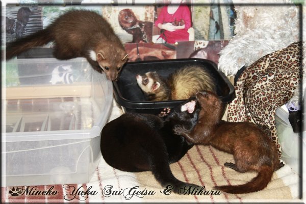 Okikurumi 0 Posté(e) le 5 novembre 2013 Non, ceux ci sont chez des amis, ceux des mustés je les prend morts et congelés. Ce n'est pas une martre ici, c'est une fouine. La fouine est classé nuisible et il y a en a un peu partout surtout proche des habitations, contrairement à la martre qui est protégé et évite de s'approcher des villes.J'ai gardé Mineko un peu plus d'un an avant de me décider à la placer. C'était un animal génial, très vive, intelligente, curieuse. Elle demandait beaucoup de temps et d'attention, je n'aurais eu qu'elle je l'aurais forcément gardé mais avec déjà Yuka et SuiGetsu qui me demande déjà énormément de temps et d'attention, s'aurait été beaucoup trop égoïste(à la base je l'ai récupéré à un piégeur qui devait la tuer). Je l'ai placé a un ami qui a perdu la sienne il y a 2ans maintenant et qui habite dans un coin paumé, mais elle n'a jamais voulu qu'il la touche une fois arriver chez lui. Finalement elle est retourné à l'état sauvage en prenant le temps de s'acclimater, et est resté autour de chez lui pour se nourrir dans le garage durant 2saisons avant de s'en aller.Mineko : Juste avant de partir, après avoir passé deux jours avec son nouveau "proprio".Son nouveau chez elle d'environ 1mois avant qu'elle ne retourne à l'extérieur.Et une compilation récente d'une promenade de chiens Partager ce message Lien à poster Partager sur d’autres sites