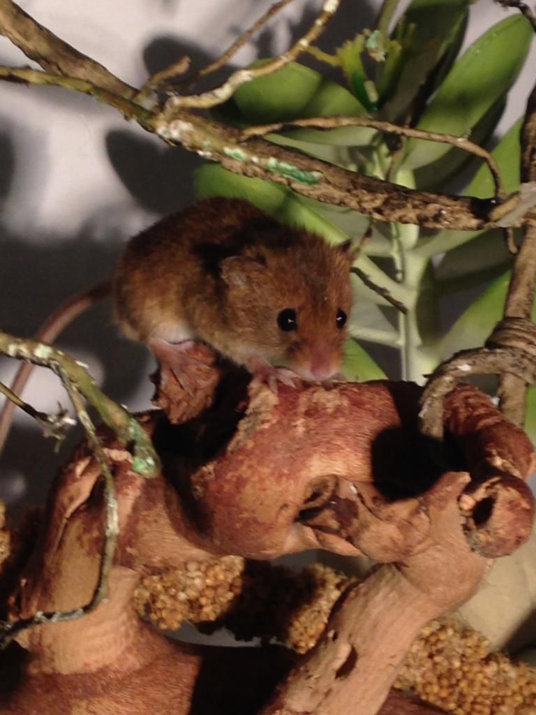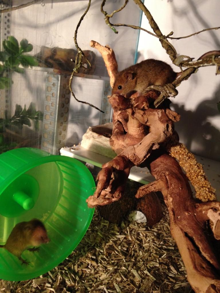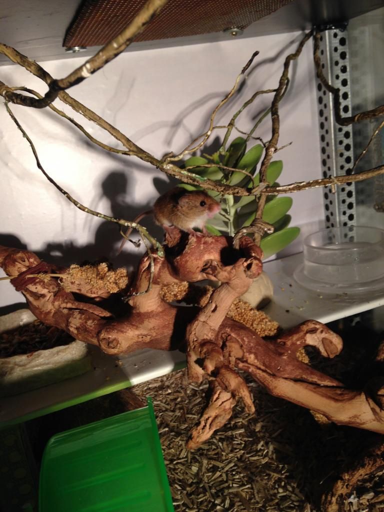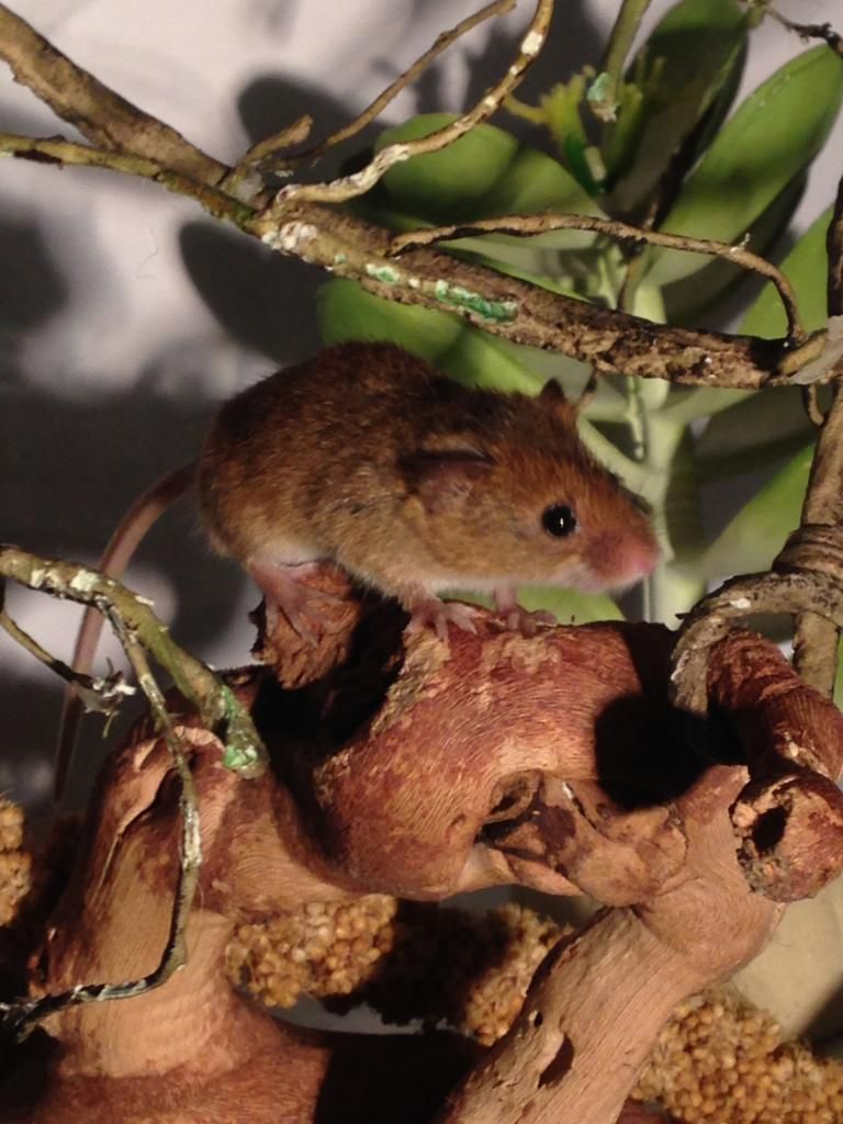 Orfée11 0 Posté(e) le 22 mai 2014 Des nouvelles des Mycromis, nous prenons respectivement nos marques ensemble. Je commence à mieux les comprendre, et ils se montrent de plus en plus curieux et réceptifs envers moi. ils viennent de plus en plus me sentir, et commence même a monter sur mes mains. Ebola qui est la plus "apprivoisée" n'hésite pas à grimper jusqu'à mon épaule, puis à redescendre. Niveau alimentation, je teste de nouvelles choses progressivement, ils apprécient grandement le blé et l'avoine, je l'ai donc rajouté à leur mélange, ainsi que quelques graines de tournesol. Dans la nature, ils se nourrissent beaucoup d'insectes (vers, grillons....) j'ai donc acheté des grillons vivants tout à l'heure, je tente de leur donner vivants pour le moment, si je vois que ça ne les intéresse pas j'essayerai morts. Après l'échec de la première portée, j'ai le bonheur de vous annoncer que nous avons 4 bébés de 5 jours qui sont en pleine forme actuellement, je ferais un post à part pour vous les présenter. Grâce à Miss_Puce (merci encore copine) nos mycromis sont maintenant installés dans un grand terrarium, séparé en deux pour pouvoir par la suite mettre les mâles d'un côté et les femelles de l'autre (quand les bébés seront sevrés). pour le moment seul le côté droit est habité par Paludisme et Variole (oui je les laisse ensemble jusqu'à sevrage de la portée d'Ebola, je sais que je peux m'attendre a avoir une autre portée, que j'assumerai évidement). les mycromis étant d'excellents grimpeurs nous avons installé des lianes suspendues, ils ont l'air d'apprécier. l'aménagement n'est pas tout à fait terminé car j'attends une livraison de nouveaux accessoires, mais je trouve que ça rend déjà pas mal . place aux photos : le côté des femelles : le côté des mâles : Variole dans la roue : la faunabox de maternité d'Ebola: j'attends bien sur toutes les critiques possibles de votre part, bonnes ou mauvaises, j'ai besoin d'avis extérieurs. Partager ce message Lien à poster Partager sur d’autres sites