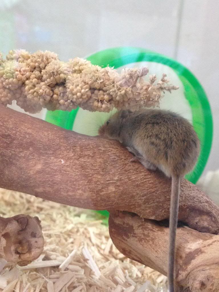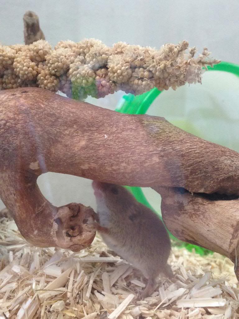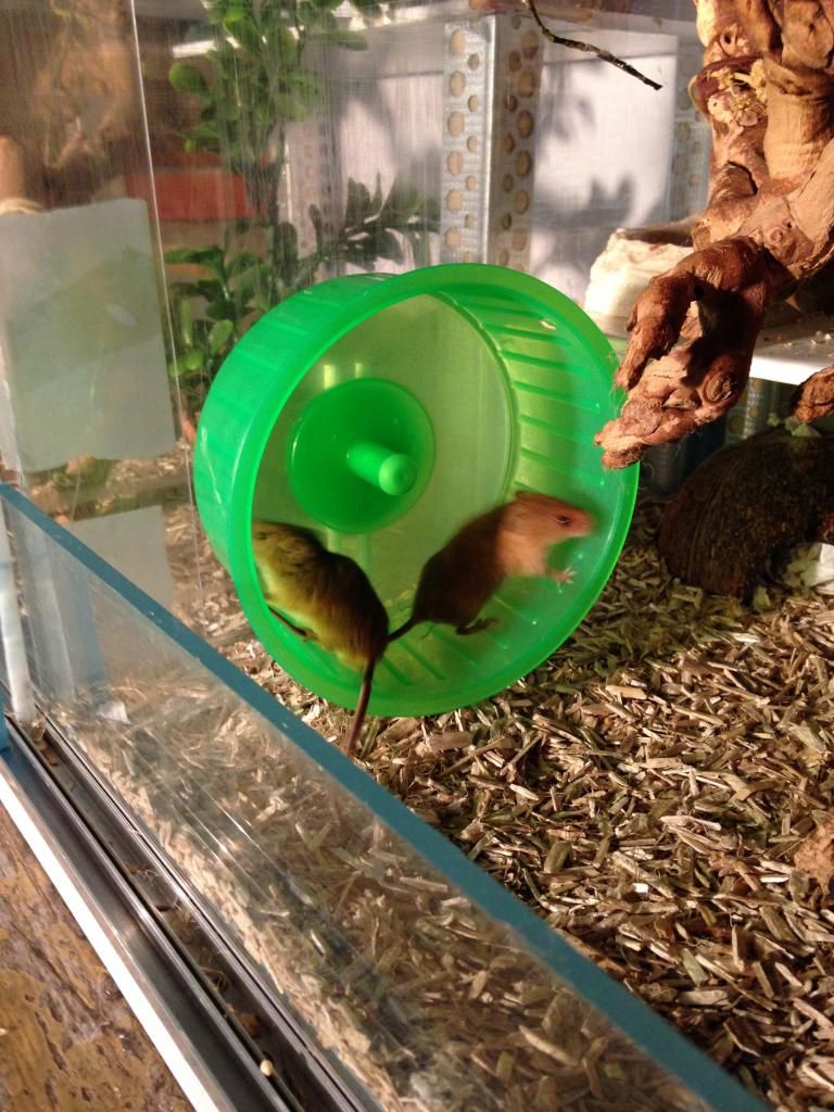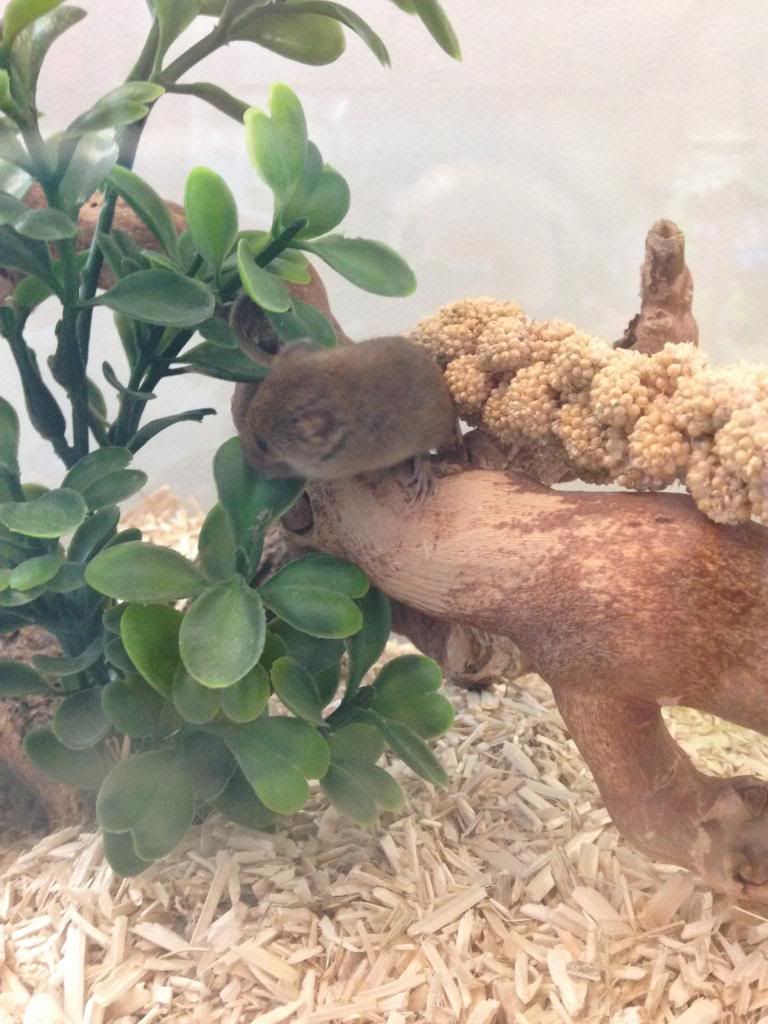 Orfée11 0 Posté(e) le 22 mai 2014 Des nouvelles des Mycromis, nous prenons respectivement nos marques ensemble. Je commence à mieux les comprendre, et ils se montrent de plus en plus curieux et réceptifs envers moi. ils viennent de plus en plus me sentir, et commence même a monter sur mes mains. Ebola qui est la plus "apprivoisée" n'hésite pas à grimper jusqu'à mon épaule, puis à redescendre. Niveau alimentation, je teste de nouvelles choses progressivement, ils apprécient grandement le blé et l'avoine, je l'ai donc rajouté à leur mélange, ainsi que quelques graines de tournesol. Dans la nature, ils se nourrissent beaucoup d'insectes (vers, grillons....) j'ai donc acheté des grillons vivants tout à l'heure, je tente de leur donner vivants pour le moment, si je vois que ça ne les intéresse pas j'essayerai morts. Après l'échec de la première portée, j'ai le bonheur de vous annoncer que nous avons 4 bébés de 5 jours qui sont en pleine forme actuellement, je ferais un post à part pour vous les présenter. Grâce à Miss_Puce (merci encore copine) nos mycromis sont maintenant installés dans un grand terrarium, séparé en deux pour pouvoir par la suite mettre les mâles d'un côté et les femelles de l'autre (quand les bébés seront sevrés). pour le moment seul le côté droit est habité par Paludisme et Variole (oui je les laisse ensemble jusqu'à sevrage de la portée d'Ebola, je sais que je peux m'attendre a avoir une autre portée, que j'assumerai évidement). les mycromis étant d'excellents grimpeurs nous avons installé des lianes suspendues, ils ont l'air d'apprécier. l'aménagement n'est pas tout à fait terminé car j'attends une livraison de nouveaux accessoires, mais je trouve que ça rend déjà pas mal . place aux photos : le côté des femelles : le côté des mâles : Variole dans la roue : la faunabox de maternité d'Ebola: j'attends bien sur toutes les critiques possibles de votre part, bonnes ou mauvaises, j'ai besoin d'avis extérieurs. Partager ce message Lien à poster Partager sur d’autres sites