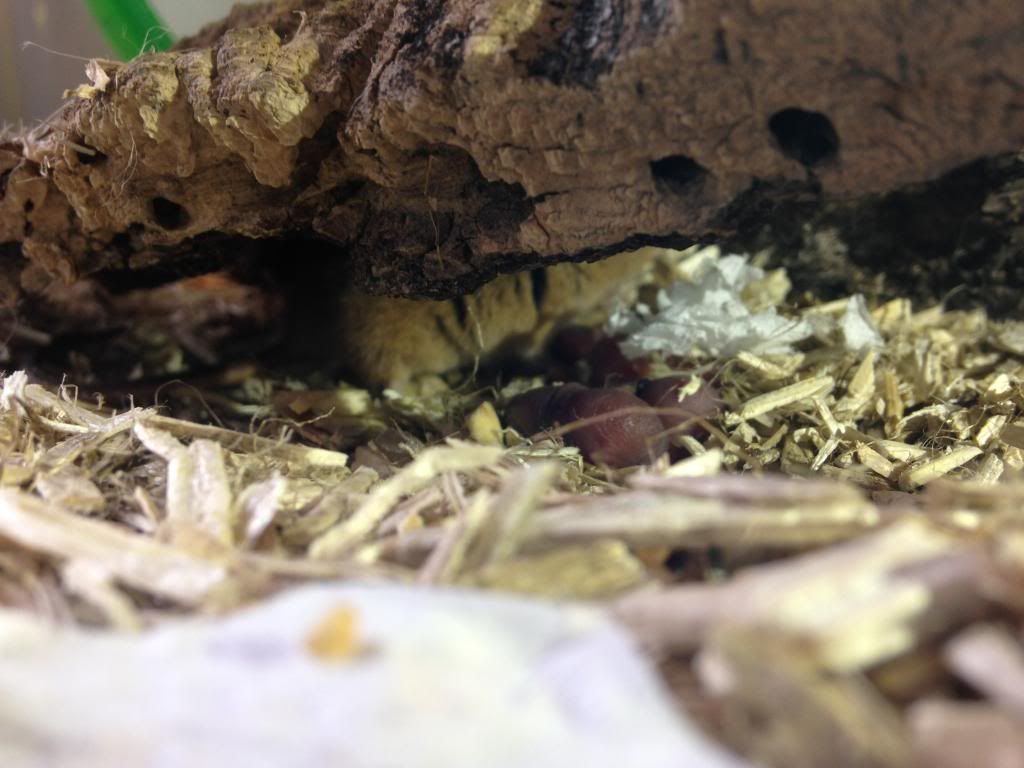 Orfée11 0 Posté(e) le 11 mai 2014 je repars donc à zéro avec un nouveau post, et je vous annonce en même temps la naissance des premiers bébés ! donc le trio de base, adopté à Houten avril 2014 : deux femelles (Variole et Ebola) et un mâle (Paludisme). les trois sont installés dans un terrarium avec litière de chanvre et accessoires (branchage, roue, cachettes....) Il y a 1 semaine nous avons remarqué que Variole avait un gros bidon, la miss attendait déjà des bébés : et aujourd'hui sont arrivés 6 jolis bébés ! nous sommes très heureux mais je ne m'attendais pas à une si grosse portée de la part de pygmées, je suis surprise ! malheureusement maman est très stressée et attaquait sans cesse ses congénères, j'ai donc pris la décision de la déplacer avec ses bébés au calme dans une faunabox. j'espère qu'elle va réussir à s'occuper de sa portée, elle commence à se calmer un peu depuis ce matin, elle criait beaucoup quand elle s'est retrouvée seule avec sa portée, là ça va mieux. j'ai fait des photos très rapidement je n'ai donc pas sexé les bébés on verra ça quand ils sortirons du nid. nous garderons au moins 1 mâle s'il y en a pour faire un terrarium mâle et un terrarium femelle. Niveau taille il font 1cm. je n'ai pas pesé pour ne pas les séparer trop longtemps et de peur qu'ils ne se refroidissent. les autres petits seront à l'adoption. (me contacter par mp) Partager ce message Lien à poster Partager sur d’autres sites