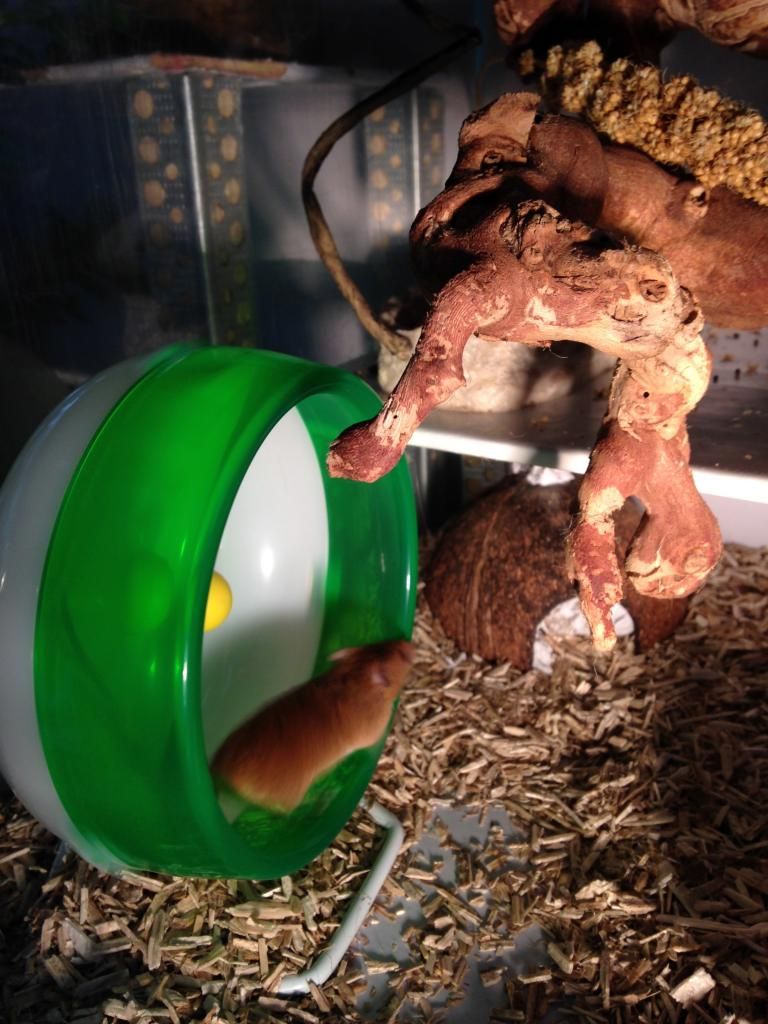 Orfée11 0 Posté(e) le 16 octobre 2014 nourriture : mélange pour perruche + mélange pour canaries, auxquels j'ajoute des vers de farine séchés, des gramaries, des petits grillons .... et des légumes frais de temps en temps ( petits morceaux). donner plus de protéines en période de gestation et lactation. hamac en tissu : je n'ai jamais essayé, pas de contre indications donc c'est comme tu veux en fait . nids : elles préféreront toujours le naturelle, ici je n'utilise que des maison en bois, en herbe ou des noix de coco vidées . roue : pas de roue horizontale, trop lourd pour elle . il faut des roues très très petites, en plastiques et très légères, et surtout pas de roues à barreaux. exemple : roue silent wheel mini . très légère, il faut bricoler un pied par contre (moi j'ai tordu un cintre pour faire un pied de roue, c'est nickel). pas besoin de thermomètre, c'est une espèce qui vit naturellement en europe et supporte nos hivers froids sans problème . Partager ce message Lien à poster Partager sur d’autres sites