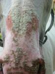 littleboy 0 Posté(e) le 18 juillet 2009 sweetytindy a écrit:voilà ce que ça donne après 9 jours (et ça a été bien pire avant, là on commence à voir la peau quand même): $ J'ai le même à la maison (enfin au pré!) 4 chevaux de la même pâture ont été atteints en même temps à des degrés diverses. Les croutes sont apparues uniquement sur les parties blanches de peau : balzane pour le bai, balzanes+bout de nez pour un alezan et un appaloosa, et enfin du bout de nez, tout le chamfrein et le tour des yeux pour le mien. Je vie,s de découvrir que ça commence aussi sur la ligne du dos. Les 4 chevaux ont été mis en box 3 jours, et l'état s'est déjà amélioré, puis changement de pâture. Ils ont reçu une injection d'anti-histaminque et crème corticoïde sur les parties lésées. En ce moment je continue les soins avec une crème adoucissante et apaisante. Après avoir cherché sur de nombreux site, je suis persuadée qu'il s'agit bien de photosensibilité mais le véto ayant fait le tour de la pâture n'a trouvé aucune des plantes habituellement mises en cause. Ce qui est curieux, c'est que les 2 chevaux de la pâture mitoyenne dont un blanc, n'ont pas été touchés du tout.... Partager ce message Lien à poster Partager sur d’autres sites