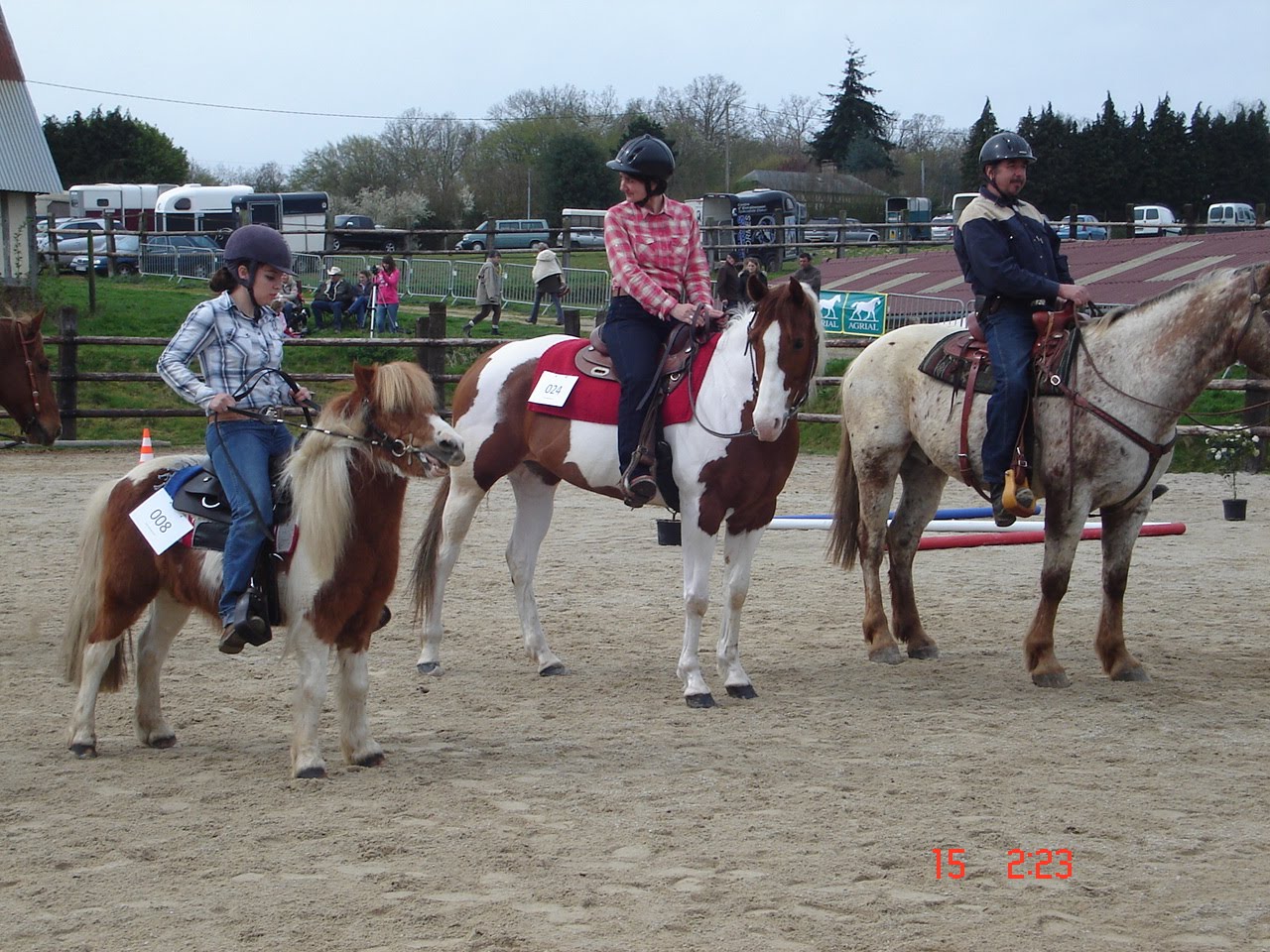 lgh.riding 0 Posté(e) le 17 avril 2011 Merci Annie,Oui ma Lily a était tondus cet hiver, cela lui donne un beau poil pour le printemps et surtout beaucoup moins d'entretien durant l'hiver!!!Cette année nous avons un championnat régional en Normandie pour la première fois avec un finale au fameux "Haras du Pin" Mes cavalier s'essaient donc à la compétition sur des concours plus petit et très convivial.J'y vais avec plusieurs Paint mais aussi avec deux de mes poneys un SF.Mais c'est sur que les Paint font des ravages sur les non initiés!!Vive les Paint[b] Partager ce message Lien à poster Partager sur d’autres sites