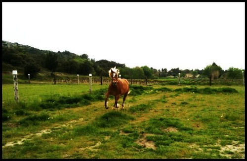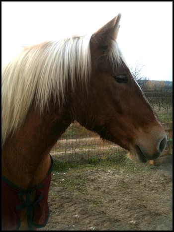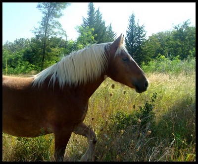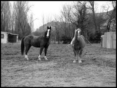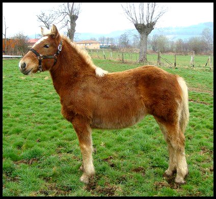 Invité Posté(e) le 13 mai 2010 Voici la présentation de mes deux bêtes adorées.Thaïs, Comtoise PP alezan crins lavés de 3ans, que j'ai récupéré à l'âge de 8mois chez un particulier qui allait la prédestiner à la viande. Quand on est allé la chercher, on a mis 3h pour l'allé et 3h pour le retour, de plus, on ne l'avait jamais vu, on ne savait pas comment elle etait mentalement. Heureusement qu'on l'a récupéré, car elle a un caractère que les autres comtois n'ont pas et elle se différencie de la masse ( elle se prend pour un PSA, ou un pur sang lol que ce soit niveau je me la pète, ou niveau exitation et forme à courir dans tous les sens et à ne pas vouloir rester sur place ).Place maintenant aux photos de la Loute ! Chez son ancien proprio, le jour où on est allés la chercher. Il faut savoir qu'elle n'a jamais été manipulé, le proprio lui a mis un licol quand elle etait petite, depuis il ne la jamais enlevé, ni touché la pouliche. ( on voit que son licol commence a vraiment etre trop petit ). On ne pouvait pas l'approcher, on a du faire monter sa mère dans le van et elle avec des bou de pain sans la toucher on essayait de la faire monter. Impossible. On a quand même du tous se cacher et la laisser monter grâce aux hénissements de la mère. Elle etait donc " sauvage ", puis au bout de quelques mois, elle s'est beaucoup rapproché & maintenant c'est mon plus gros pot de colle Passons maintenant à Doréen, qui est un hongre SF PP de 19ans, je l'ai récupéré il y a deux ans car sa propriétaire " ne pouvais plus " s'en occuper, c'est à dire qu'elle avait peur de le monter, du coup quand je l'ai eu, il n'avait pas été remonté depuis 5ans. Cheval très difficil qu'elle me disait, avec une bouche sensible mais il faut être un homme pour le monter, galop 6 minimum en carrière et 7 en extérieur. Bon, ok au début elle avait raison, ok il est difficil et il n'est pas montable par tout le monde, mais là, c'est un vrai bonheur de le monter. Il n'est donc pas abimé, malgrès qu'il ai fais des concours de CSO en International d'où la marque au fer sur sa cuisse gauche. J'ai donc envie de dire, que j'ai quand même mon petit Champion qui du coup a plus qu'envie de travailler que ce soit en obstacle, dressage, balade ou à pied et jouer avec moi. C'est un coeur en Or, comme disent les personnes qui le connaisse, il d'écrocherait la lune pour me satisfaire, il donne tout ce qu'il a pour me rendre heureuse, & j'en fais de même pour lui. C'est peut être pour cela que l'on s'entend très bien. Partager ce message Lien à poster Partager sur d’autres sites
