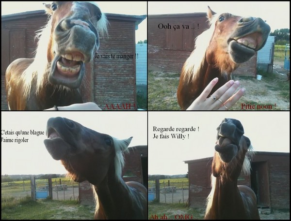 alix1 0 Posté(e) le 21 mai 2010 j'aime trop la photo ou le cheval saute avec sa cavalière!! Partager ce message Lien à poster Partager sur d’autres sites