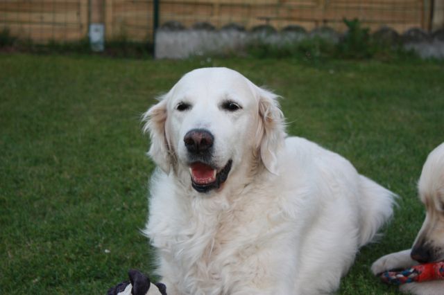 steph&cooper 0 Posté(e) le 30 avril 2011 Les posts Photos d'Olga si touchant, m'ont donné envie de mettre et de vous faire partager quelques photos de ma mamie golden, Pastelle alias Pastoulette, goldinette de la famille, qui vit depuis toujours chez mes parents. les années passent trop vite, je l'aime cette chienne...La voici entre 10 et 11 ans 3/4 :Avec Coop en décembre dernier Partager ce message Lien à poster Partager sur d’autres sites