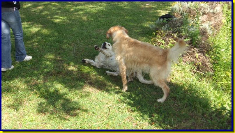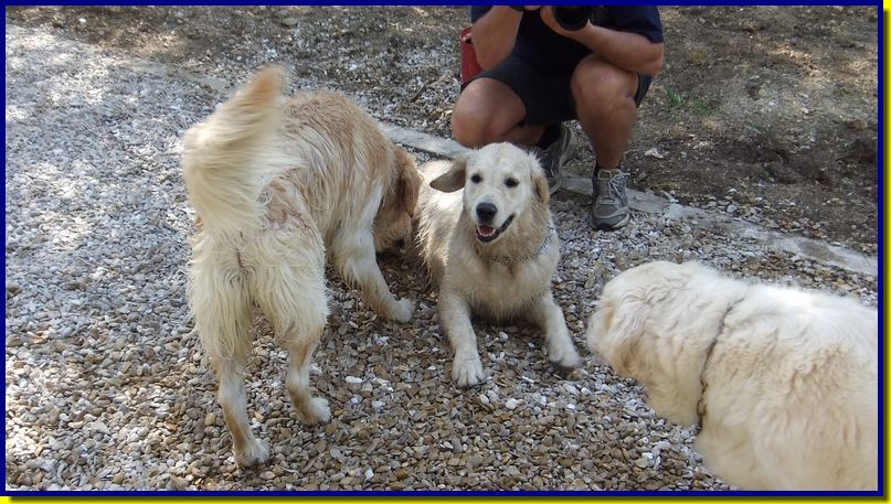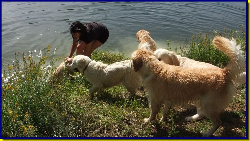 Fserg 0 Posté(e) le 13 juin 2011 Les premières photos de cette super et très très agréables journées, que de bons souvenirs.A peine arrivés les loulous se dirigent droit vers le plan d'eau.La berge étant un peu haute, Eko est ici un peu aidéLes premiers contacts, Flambeur au sol, mais c'est lequel celui là ? Crumble ?Tiens un nouveau petit jeune parmi nous !2 amis inséparablesLe temps est agréable, que demander de mieuxAmbiance conviviale, rosé-pamplemousse délicieux.Nefertitti à l'air d'apprécier le rosé-pamplemousse.Bla bla bla, les discutions vont bon train et on parle de quoi ?Oriane à l'air d’apprécier, elle n'était pas la seule.Crumble ou Echo aidez moi ?Maintenant j'ai la réponse: c'est CrumbleDidou16, jojo78 et NefertittiVoici les stars du jours dommage un loulou est en partie surla photo, mais je suis rassuré d'autres photographes étaient là.J'espère qu'elle sera mise avec les noms de nos Goldinous.Voilà pour moi je n'ai plus de photos à mettre, mais cela va suivre.J'ai quelques bouts de films à préparer.Pour ceux qui veulent tester la 3D je préparerai un post sur ce sujet.Encore merci à vous tous pour cette super journée.AmicalementSerge et Geneviève Partager ce message Lien à poster Partager sur d’autres sites