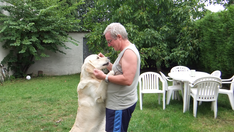 Fserg 0 Posté(e) le 4 septembre 2011 Comme promis voici quelques photos de mon loulou qui va maintenant sur ses 11 mois son poids c'est stabilisé à 37 kg depuis 2 mois, en corpulence il s'est élargi un peu et la tête fait moins jeunot.Je suis en pleine observationEn pose pour l'occasionLa photo que mon maître fait à chaque foi que je vais dans le LoiretDès que l'on ouvre une fenêtre monsieur vient matter s'il n'y a pas une jolie demoiselle qui passe(ici ce sont les vaches du Jura) quoique elles sont jolies cesvaches et en plus elles nous font bon comté.De retour dans mon jardin je suis en plein jeuje reprend mon souffle.Avec mon maître que j'adore.Hier gros orage sur la région parisienne, je suis avec mes petits maîtres qui font des photos d'éclairs (enfin ils essayent).Les eclairs et les grondements m'amusent et ne me font pas peur.On me dit que j'ai grandi, mais non ce n'est pas vrai!....Bon dimanche à tous Partager ce message Lien à poster Partager sur d’autres sites