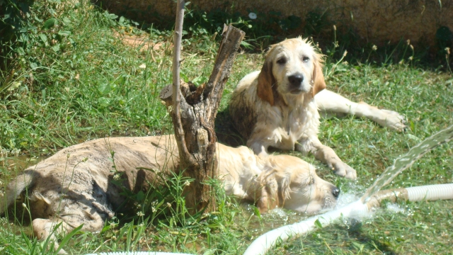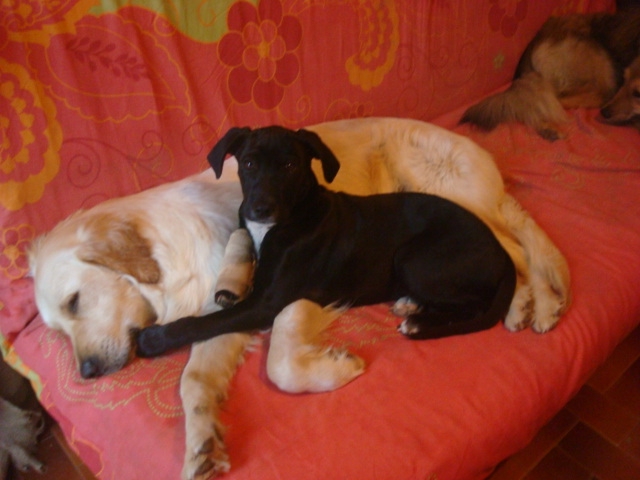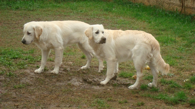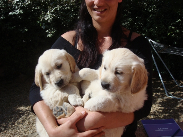 almeno 0 Posté(e) le 30 décembre 2011 DixLoups et Dyjay, bien que frères d'une même portée sont très différents tant au niveau caractère que physiquement.C'est étonnant mais DixLoups a pris le physique de son papa et le caractère de sa maman, alors que Dyjay c'est l'inverse.DixLoups est le "dominant" et Dyjay est le "bon copain".Ils ont nés le 11 mars 2008.A 1 mois 1/2Dyjay à gauche, DixLoups à droiteIls ont été accueilli avec beaucoup de bienveillance par ma tendre Diane (11 ans à l'époque) qui nous a malheureusement quitté fin 2009A 3 moisDixLoupsDyjayA 5 mois (les golden aiment l'eau il paraît A 9 moisDixLoupsDyjayA 1 an (ils aiment bien la boue aussi)Aujourd'huiDixLoups (oui je sais il un tantinet trop rond, mon véto me passe un savon tout le temps !)Dyjay2 petites vidéos de Dyjay avec Fanya, petite x bichon qui avait été jetée dans un jardin à 3 semaine non sevrée (je l'ai prise en FA et forcément adoptée !) Je vous mettrai les autres membres de la meute tout à l'heure. Partager ce message Lien à poster Partager sur d’autres sites