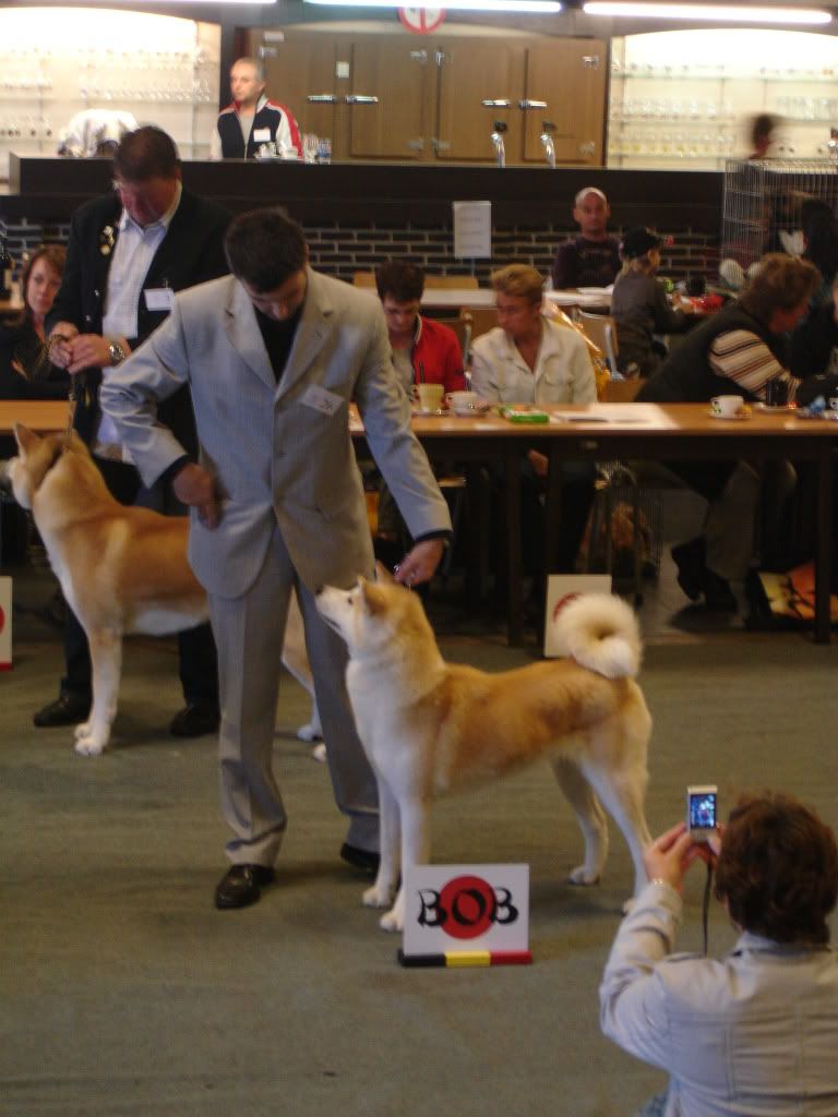 Aiko San 0 Posté(e) le 26 septembre 2008 mewy a écrit:elle sont tres belles toute les deux Aiko San a écrit:. Il y avait ce weekend un clubmatch d'akitas, de shibas, d 'akitas américains. Il y avait 76 chiens d'inscrits, ce qui est beaucoup. Nous avions enmené Bailey. Bien, 75 chiens ne faisaient que aboyer, pleurer, grogner... Que deux étaient sages comme une image...tu as des fotos de cette rencontre?Pour les photos, c'est Luc qui s'en chargera. Mais nous n'avons pas vraiment beaucoup de photos de cet événement car nous n'aimions pas trop être là avec tout ce bruit... Et nous ne sommes pas restés jusqu'à la fin car nous devions participer à un concours d'obéissance l'après-midi. Les akitas étaient les premiers jugés et nous avons quitté après vers 13h30. Mais j'ai une photo du BOB je crois, je demanderai à Luc de la poster et aussi de Aiko. Elle a obtenu la 2e place avec la remarque que ses oreilles ne se trouvent pas à la bonne place Partager ce message Lien à poster Partager sur d’autres sites