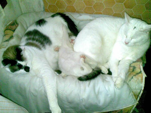 @lix 0 Posté(e) le 6 novembre 2008 Bah il est adopté d'office, Capuche et Pito lui font sa toilette et lui ont fait faire le tour du propriétaire, et Mogwaï lui sert de coussin pour la sieste... La nuit, les chats dorment à 3 blottis les uns "dans" les autres, on sait plus où commence Pito, ou finit Capuche et où se cache Mallow... Partager ce message Lien à poster Partager sur d’autres sites