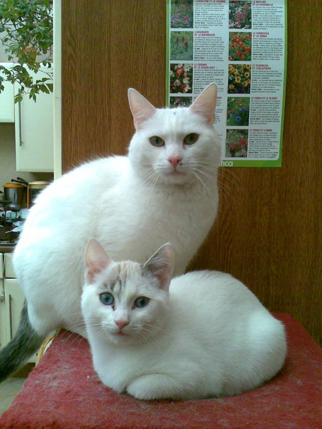 @lix 0 Posté(e) le 1 octobre 2008 Bientôt un nouveau venu dans notre petite famille à Poulain et à moi... De jolis yeux bleus comme Capuche et comme Léo, son pôpa, une couleur divine et paraît qu'il ronronne déjà comme un furieux... Nos 3 fauves et notre Gros Loup vont adorer !!! En plus il a une oreille complètement blanche !!! Je crois bien que son petit nom va être "Pod'Paï" pour aller dans la continuité Chat-Capuche et Chat-Pito... M'enfin, on hésite encore... Partager ce message Lien à poster Partager sur d’autres sites