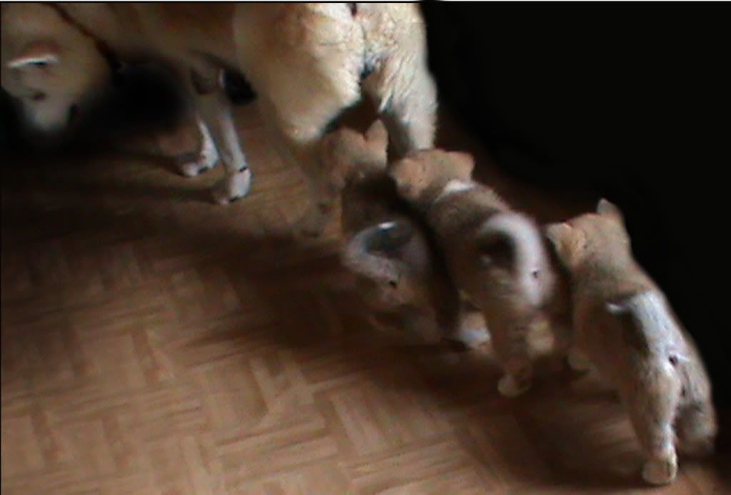 Audrey.Eden 0 Posté(e) le 13 août 2011 itae a écrit:Des nouvelles de la petite princesse, c'est la première de la portée à avoir eu les oreilles en place Elle qui avait du retard (c'etait la plus petite de la portée) j'ai l'impression qu'elle à bien rattrapé ! :)6 semaines (devant)Trop cocotte cette photo tous à la queue leu leu Partager ce message Lien à poster Partager sur d’autres sites
