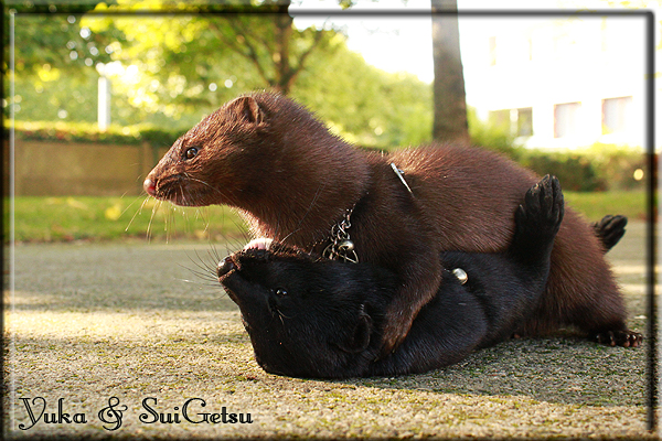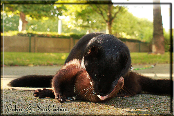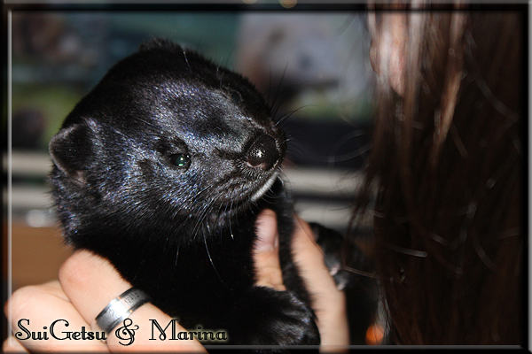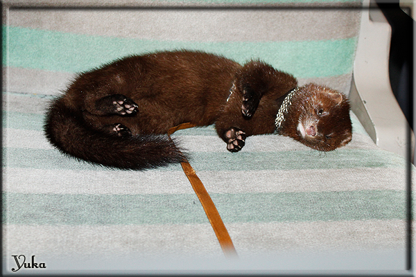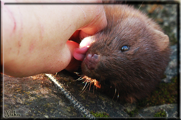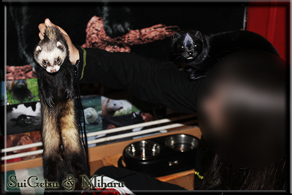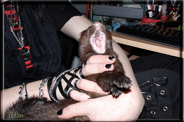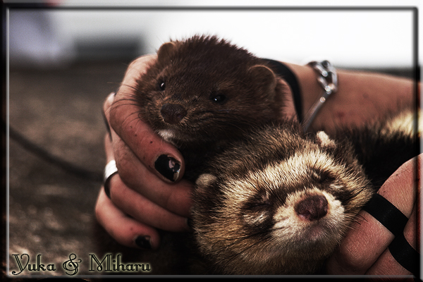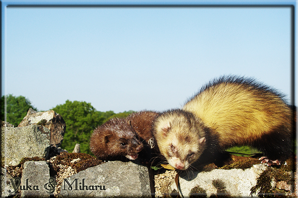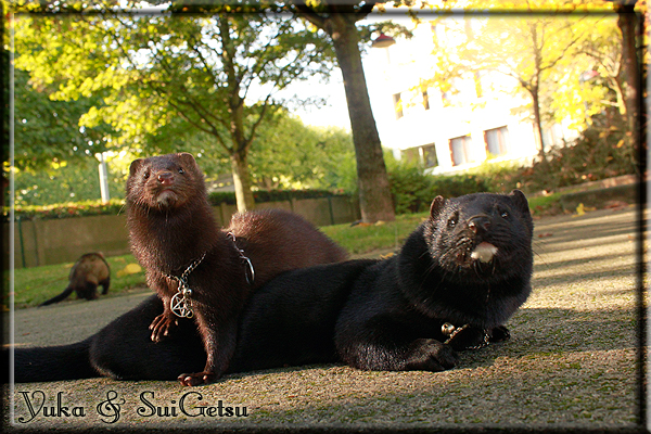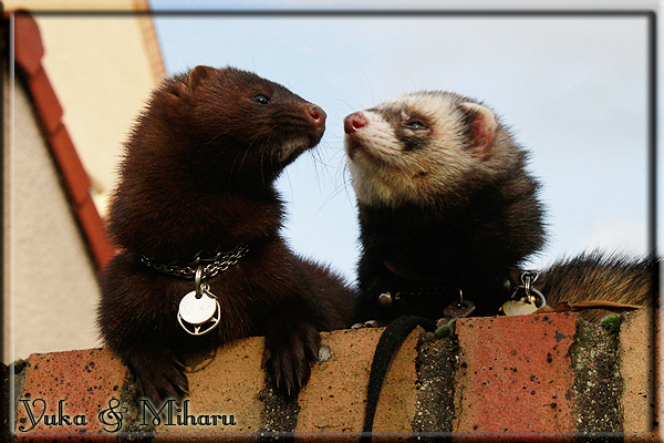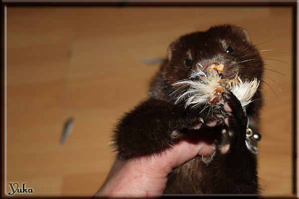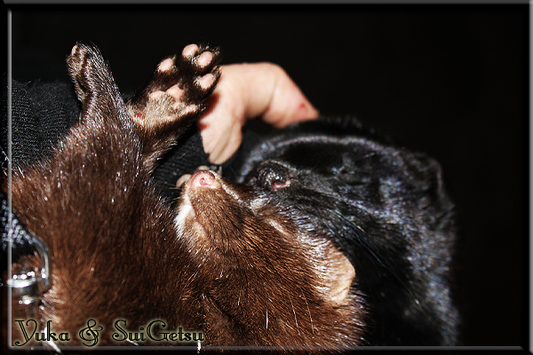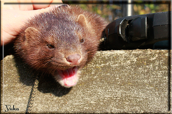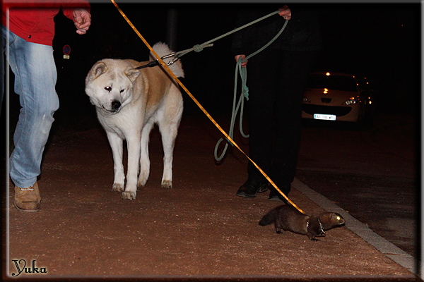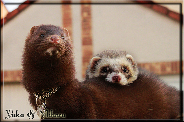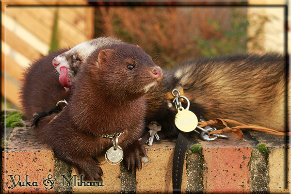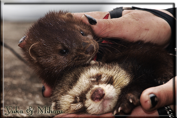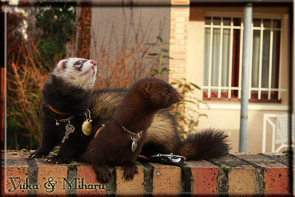 Invité Posté(e) le 3 février 2011 Bonjour à tous, j'ai 18ans et demi, passionnée des animaux, et de photographie.J'ai 3 mustélidés qui partage mon quotidien, et avec lesquels je passe la majorité de mon temps.J'aimerais dans peu me lancer dans une formation éducateur/comportementaliste canin. "Domaine" que j'ai connue grâce à des amies elles même du métier.Déjà intéressé il y a de cela a peu près un an, je n'avais que peu approfondis mes recherches et pensais plus à rester dans le mustélidé, bien qu'une certaine passion également pour le chien. Depuis quelques semaines, je suis vraiment décidé à apprendre a connaitre les chiens, ca me viendra certainement naturellement pour beaucoup de choses, comme avec furets/visons.Entre autre, j'aimerais beaucoup adopter un Akita Inu, par contre je pencherais plus sur un mâle adulte. Je suis consciente des difficultés spécifique à la race, mais encore faut il que mes parent acceptent ...(car je vie encore chez mes parents... pour mon plus grand "plaisir" ^^"...). Que penseriez vous d'avoir un Akita alors que j'ai mes cours d'éducateur a côté ? mes mustélidé resteraient en cage pendant les moment ou le chien doit rester sans surveillance et que je suis absente. Si possible j'aimerais réussir à faire cohabiter avec mes visons et mon furet mais cela je verrais sur le moment, je ne pourrais savoir qu'une fois l'animal en face de moi, et que j'apprenne au petit a petit à le connaitre, je n'attend franchement aucun conseilles la dessus, je saurais quoi faire comment réagir, en face de la situation, sans prendre de risque pour mes animaux, et si cela peut passer tant mieux, autrement tant pi. Je ne demande qu'un avis, car je ne suis vraiment pas sur de pouvoir convaincre mes parents, je vais faire tout mon possible, car cette adoption me tient vraiment a coeur.Je vous met une vidéo de chacun de mes petits démons ; )Spoiler: Yuka, 4ans, l'être qui m'est la plus cher. Elle est tout pour moi, c'est ma petite puce. Je l'ai chopé sur une plage en Bretagne alors que j'avais 14ans et l'ai "apprivoisé".Miharu, 2ans. Arrivée quelques temps après la mort d'un mâle que j'avais récupéré(Itachi), car il avait mordu jusque fracture de doigt du mari de la personne qui l'avait récupéré d'un mec voulant le faire euthanasier, car il avait mordu sa fille au visage. Malheureusement il est mort d'un anévrisme après 8mois a mes côté (et Yuka). D'ou l'arrivée de Miharu, j'avais du mal a supporter l'absence de mon loulou.Et SuiGetsu le dernier arrivé, un petit démon qui m'en aura fait baver au début, me chiquent systématiquement (j'étais redécoré ^^) heureusement il ne mordait pas le visage ! difficile de résister à lui faire des bisous ^^Itachi.... son hommage..A la neige cet hiver et une tite dernière vidéo pour vous faire rire ^^ (vidéo faire avec une amie ^^) Il y a d'avantage de sons qu'ils peuvent émettre mais voila quelques uns que j'ai pu filmer alors que l'animal était dans les mains, bloqué convenablement pour éviter les morsures vu que pas du tout habitué au contact et manipulations. La raisons de ces cries : des caresse lentes. ^^SuiGetsu a 3mois : Voila ^^ Comme ca vous voyez un peu avec tout cela "qui je suis" ^^Je m'y connais très bien pour ces mustélidés, pour les chiens beaucoup moins !mais j'aimerais apprendre a les connaitre, j'en ai vraiment l'envie. Au début j'ai pensé a éducateur/comportementaliste furets/visons mais bon ... je peux l'inclure plutôt en plus du chien, les furets je n'aurais pas beaucoup de demande d'aide, les visons sont passé annexe2, classifié dans la faune sauvage désormais il faut CDC et AOE pour en détenir légalement, alors je ne crois pas qu'il y aura beaucoup de suivant adoptants ^^" ou alors ils resteront caché et seront hors la loi.Si il y a moyen de rencontrer des propriétaires de Akita dans le 94, au mieux vers le bois de Vincenne, ce serais avec grand plaisir que je demanderais de m'accorder un peut de temps afin de m'en apprendre d'avantage sur cette espèce. ! Car les info sur le net c'est bien mais cela ne vaut pas les échanges direct avec les passionnées. J'aurais tout appris sur furets/visons directement en leur contact (sans même leur maitre car souvent quand j'allais voir les gens c'étais pour les aider a "rattraper" les erreur faite avec leur animal qui ai devenue "non manipulable" et pour le coup pas moyen de le prendre dans les mains sans morsure et animal qui se débat pas moyen de poser un harnais donc de le sortir, etc etc.. enfin j'aurais aussi rencontré pas mal de personnes avec leur animaux, juste pour les rencontrer ^^Je tiens quand même à préciser : l'on ne me voie sur aucune photos/vidéos (à par mes mains) sur les images/vidéos précédentes. ^^ Partager ce message Lien à poster Partager sur d’autres sites