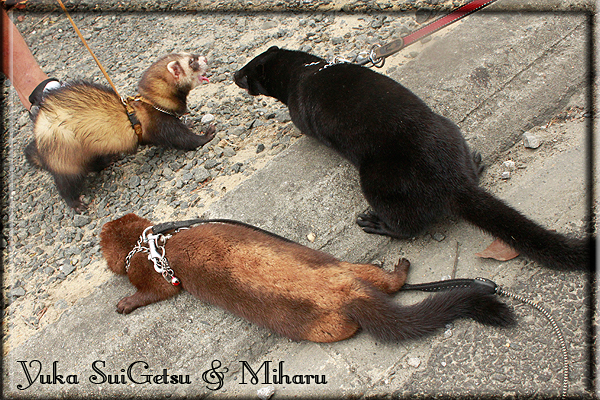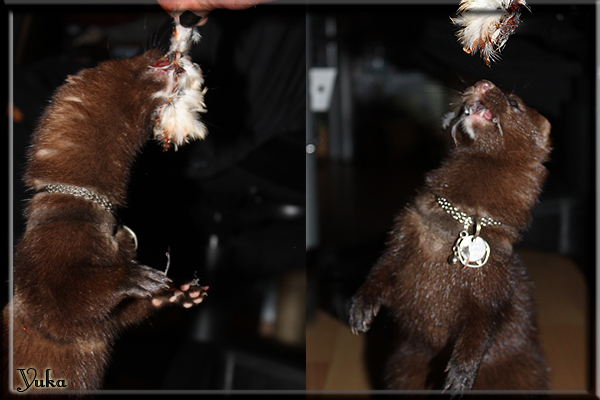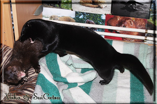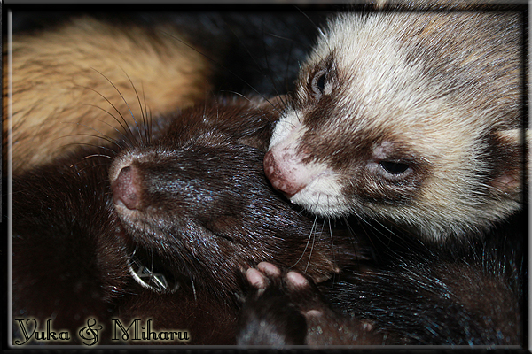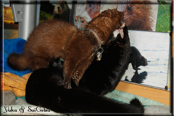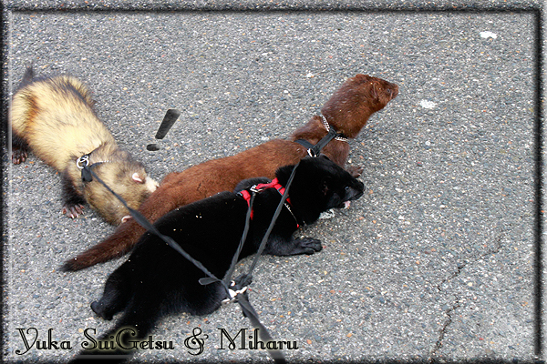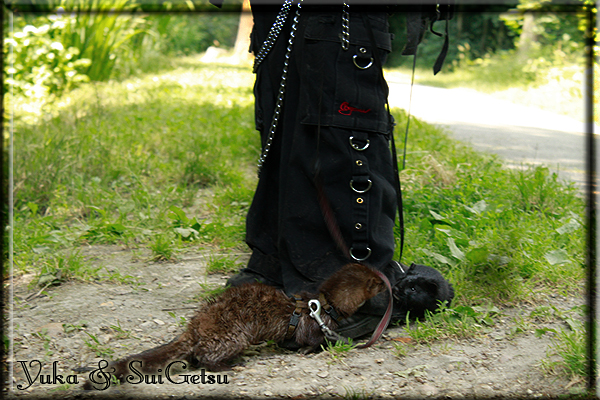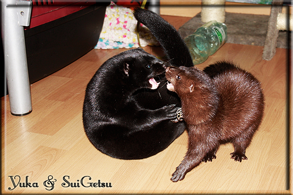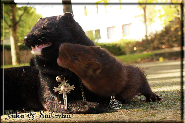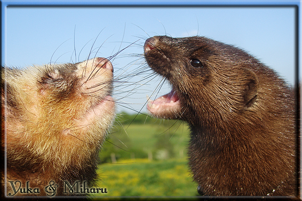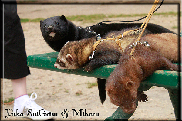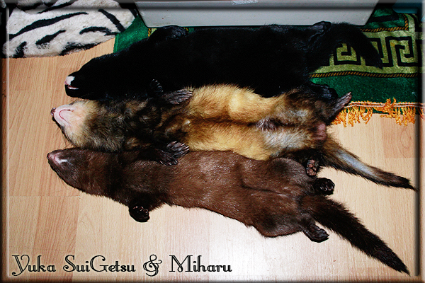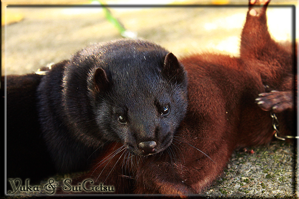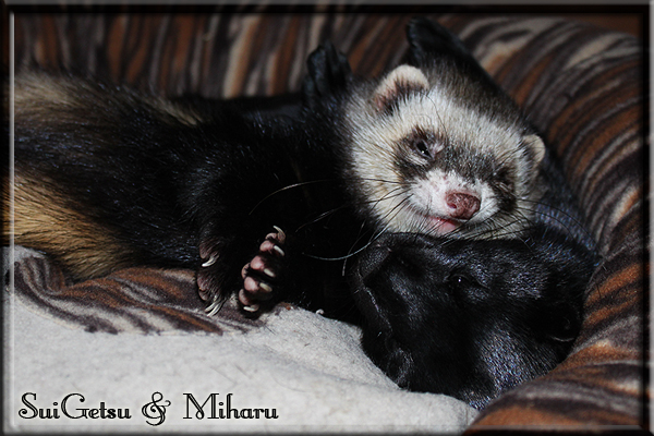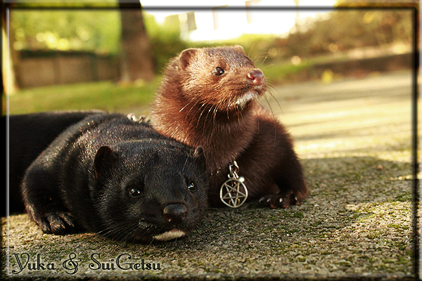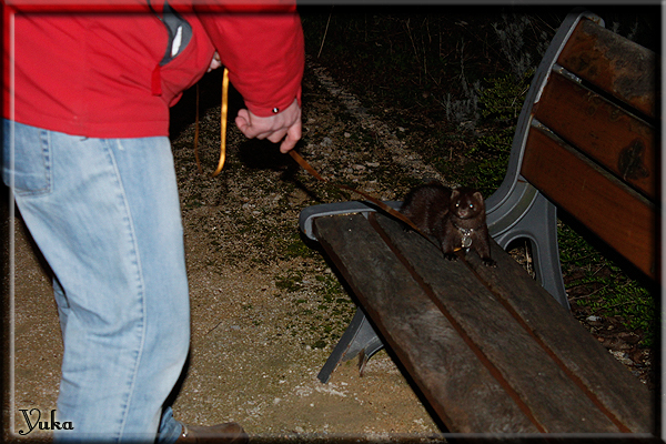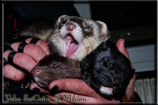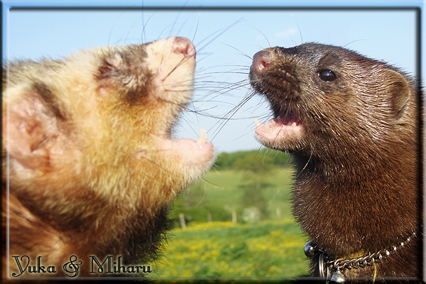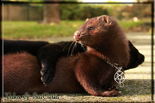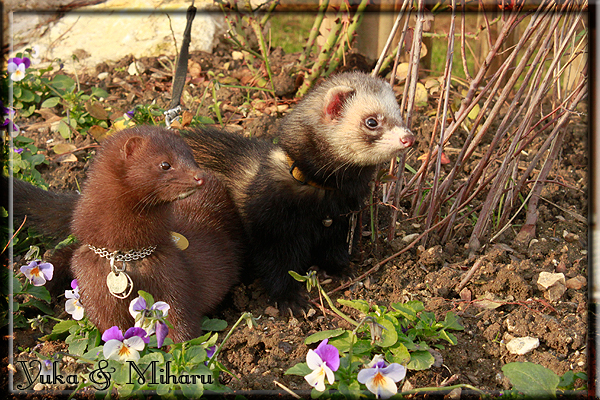 Invité Posté(e) le 3 février 2011 Bonjour à tous, j'ai 18ans et demi, passionnée des animaux, et de photographie.J'ai 3 mustélidés qui partage mon quotidien, et avec lesquels je passe la majorité de mon temps.J'aimerais dans peu me lancer dans une formation éducateur/comportementaliste canin. "Domaine" que j'ai connue grâce à des amies elles même du métier.Déjà intéressé il y a de cela a peu près un an, je n'avais que peu approfondis mes recherches et pensais plus à rester dans le mustélidé, bien qu'une certaine passion également pour le chien. Depuis quelques semaines, je suis vraiment décidé à apprendre a connaitre les chiens, ca me viendra certainement naturellement pour beaucoup de choses, comme avec furets/visons.Entre autre, j'aimerais beaucoup adopter un Akita Inu, par contre je pencherais plus sur un mâle adulte. Je suis consciente des difficultés spécifique à la race, mais encore faut il que mes parent acceptent ...(car je vie encore chez mes parents... pour mon plus grand "plaisir" ^^"...). Que penseriez vous d'avoir un Akita alors que j'ai mes cours d'éducateur a côté ? mes mustélidé resteraient en cage pendant les moment ou le chien doit rester sans surveillance et que je suis absente. Si possible j'aimerais réussir à faire cohabiter avec mes visons et mon furet mais cela je verrais sur le moment, je ne pourrais savoir qu'une fois l'animal en face de moi, et que j'apprenne au petit a petit à le connaitre, je n'attend franchement aucun conseilles la dessus, je saurais quoi faire comment réagir, en face de la situation, sans prendre de risque pour mes animaux, et si cela peut passer tant mieux, autrement tant pi. Je ne demande qu'un avis, car je ne suis vraiment pas sur de pouvoir convaincre mes parents, je vais faire tout mon possible, car cette adoption me tient vraiment a coeur.Je vous met une vidéo de chacun de mes petits démons ; )Spoiler: Yuka, 4ans, l'être qui m'est la plus cher. Elle est tout pour moi, c'est ma petite puce. Je l'ai chopé sur une plage en Bretagne alors que j'avais 14ans et l'ai "apprivoisé".Miharu, 2ans. Arrivée quelques temps après la mort d'un mâle que j'avais récupéré(Itachi), car il avait mordu jusque fracture de doigt du mari de la personne qui l'avait récupéré d'un mec voulant le faire euthanasier, car il avait mordu sa fille au visage. Malheureusement il est mort d'un anévrisme après 8mois a mes côté (et Yuka). D'ou l'arrivée de Miharu, j'avais du mal a supporter l'absence de mon loulou.Et SuiGetsu le dernier arrivé, un petit démon qui m'en aura fait baver au début, me chiquent systématiquement (j'étais redécoré ^^) heureusement il ne mordait pas le visage ! difficile de résister à lui faire des bisous ^^Itachi.... son hommage..A la neige cet hiver et une tite dernière vidéo pour vous faire rire ^^ (vidéo faire avec une amie ^^) Il y a d'avantage de sons qu'ils peuvent émettre mais voila quelques uns que j'ai pu filmer alors que l'animal était dans les mains, bloqué convenablement pour éviter les morsures vu que pas du tout habitué au contact et manipulations. La raisons de ces cries : des caresse lentes. ^^SuiGetsu a 3mois : Voila ^^ Comme ca vous voyez un peu avec tout cela "qui je suis" ^^Je m'y connais très bien pour ces mustélidés, pour les chiens beaucoup moins !mais j'aimerais apprendre a les connaitre, j'en ai vraiment l'envie. Au début j'ai pensé a éducateur/comportementaliste furets/visons mais bon ... je peux l'inclure plutôt en plus du chien, les furets je n'aurais pas beaucoup de demande d'aide, les visons sont passé annexe2, classifié dans la faune sauvage désormais il faut CDC et AOE pour en détenir légalement, alors je ne crois pas qu'il y aura beaucoup de suivant adoptants ^^" ou alors ils resteront caché et seront hors la loi.Si il y a moyen de rencontrer des propriétaires de Akita dans le 94, au mieux vers le bois de Vincenne, ce serais avec grand plaisir que je demanderais de m'accorder un peut de temps afin de m'en apprendre d'avantage sur cette espèce. ! Car les info sur le net c'est bien mais cela ne vaut pas les échanges direct avec les passionnées. J'aurais tout appris sur furets/visons directement en leur contact (sans même leur maitre car souvent quand j'allais voir les gens c'étais pour les aider a "rattraper" les erreur faite avec leur animal qui ai devenue "non manipulable" et pour le coup pas moyen de le prendre dans les mains sans morsure et animal qui se débat pas moyen de poser un harnais donc de le sortir, etc etc.. enfin j'aurais aussi rencontré pas mal de personnes avec leur animaux, juste pour les rencontrer ^^Je tiens quand même à préciser : l'on ne me voie sur aucune photos/vidéos (à par mes mains) sur les images/vidéos précédentes. ^^ Partager ce message Lien à poster Partager sur d’autres sites
