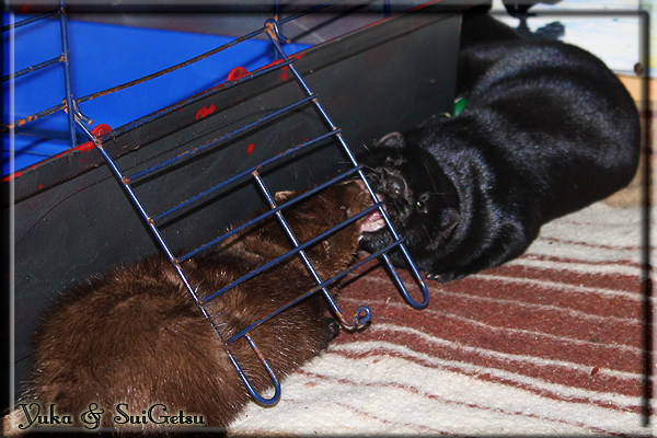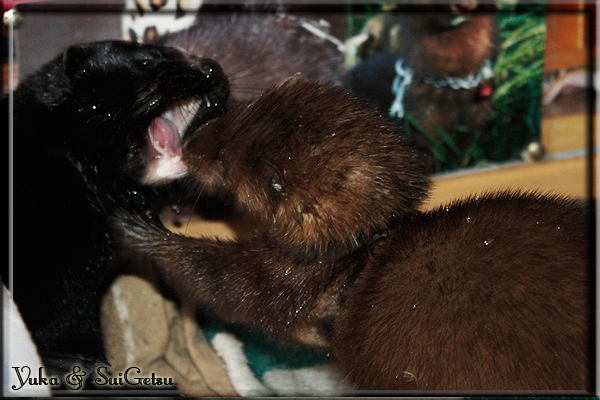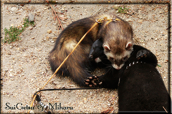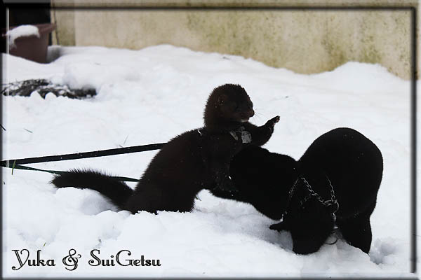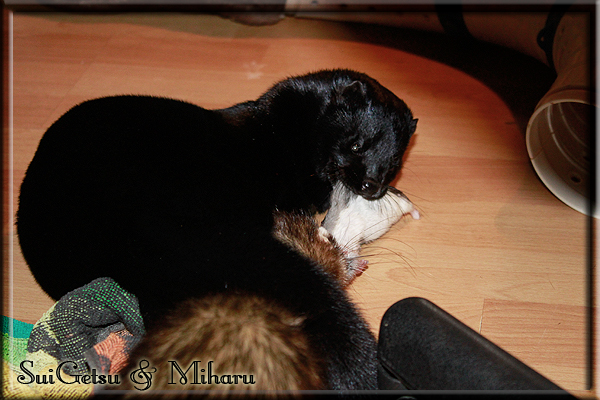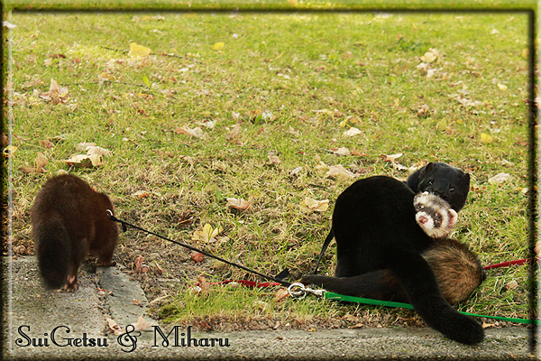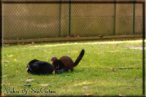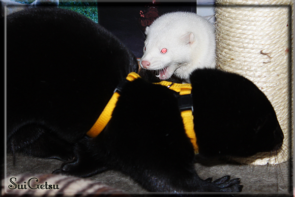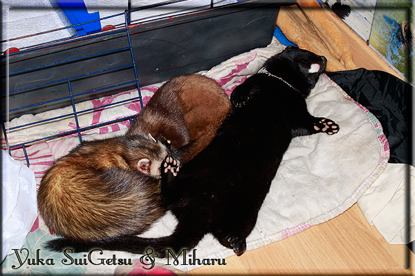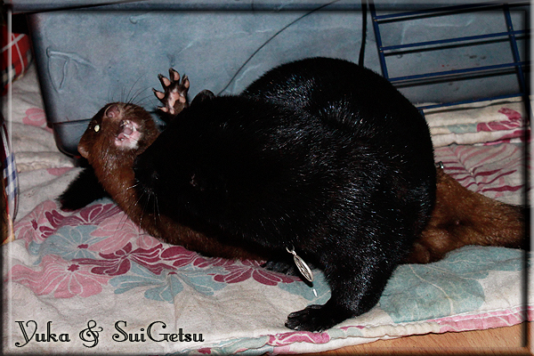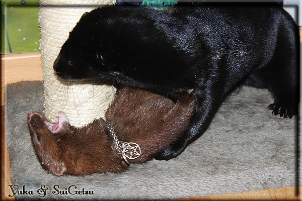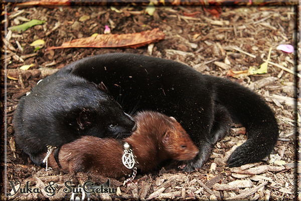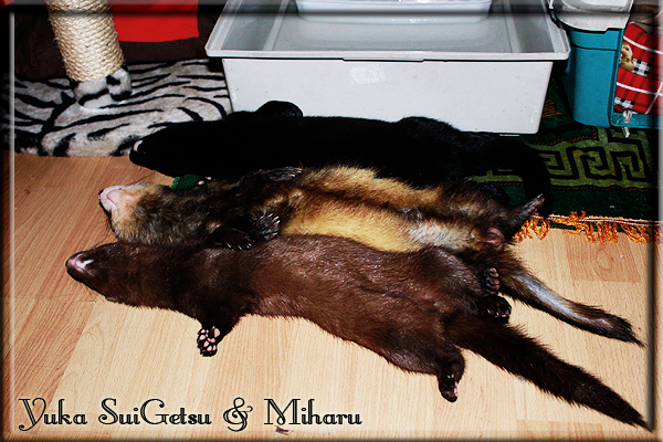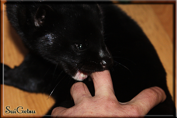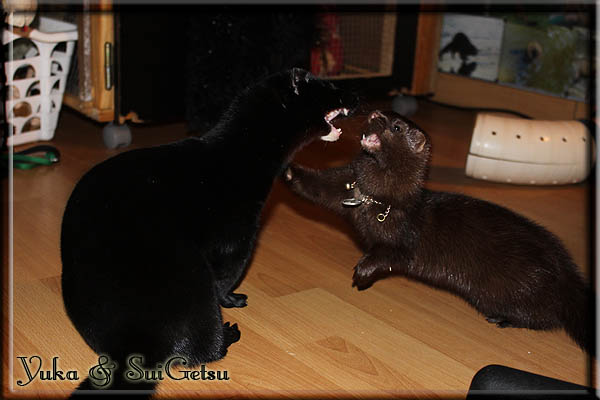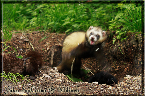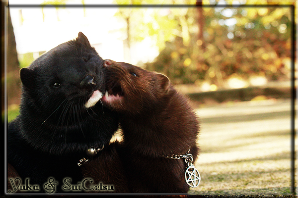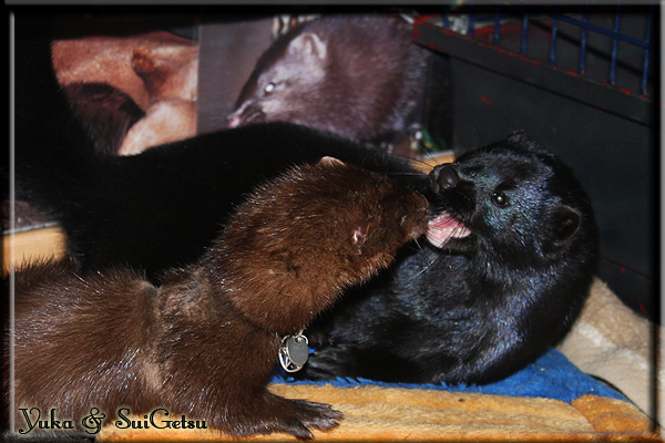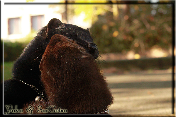Invité Posté(e) le 3 février 2011 Bonjour à tous, j'ai 18ans et demi, passionnée des animaux, et de photographie.J'ai 3 mustélidés qui partage mon quotidien, et avec lesquels je passe la majorité de mon temps.J'aimerais dans peu me lancer dans une formation éducateur/comportementaliste canin. "Domaine" que j'ai connue grâce à des amies elles même du métier.Déjà intéressé il y a de cela a peu près un an, je n'avais que peu approfondis mes recherches et pensais plus à rester dans le mustélidé, bien qu'une certaine passion également pour le chien. Depuis quelques semaines, je suis vraiment décidé à apprendre a connaitre les chiens, ca me viendra certainement naturellement pour beaucoup de choses, comme avec furets/visons.Entre autre, j'aimerais beaucoup adopter un Akita Inu, par contre je pencherais plus sur un mâle adulte. Je suis consciente des difficultés spécifique à la race, mais encore faut il que mes parent acceptent ...(car je vie encore chez mes parents... pour mon plus grand "plaisir" ^^"...). Que penseriez vous d'avoir un Akita alors que j'ai mes cours d'éducateur a côté ? mes mustélidé resteraient en cage pendant les moment ou le chien doit rester sans surveillance et que je suis absente. Si possible j'aimerais réussir à faire cohabiter avec mes visons et mon furet mais cela je verrais sur le moment, je ne pourrais savoir qu'une fois l'animal en face de moi, et que j'apprenne au petit a petit à le connaitre, je n'attend franchement aucun conseilles la dessus, je saurais quoi faire comment réagir, en face de la situation, sans prendre de risque pour mes animaux, et si cela peut passer tant mieux, autrement tant pi. Je ne demande qu'un avis, car je ne suis vraiment pas sur de pouvoir convaincre mes parents, je vais faire tout mon possible, car cette adoption me tient vraiment a coeur.Je vous met une vidéo de chacun de mes petits démons ; )Spoiler: Yuka, 4ans, l'être qui m'est la plus cher. Elle est tout pour moi, c'est ma petite puce. Je l'ai chopé sur une plage en Bretagne alors que j'avais 14ans et l'ai "apprivoisé".Miharu, 2ans. Arrivée quelques temps après la mort d'un mâle que j'avais récupéré(Itachi), car il avait mordu jusque fracture de doigt du mari de la personne qui l'avait récupéré d'un mec voulant le faire euthanasier, car il avait mordu sa fille au visage. Malheureusement il est mort d'un anévrisme après 8mois a mes côté (et Yuka). D'ou l'arrivée de Miharu, j'avais du mal a supporter l'absence de mon loulou.Et SuiGetsu le dernier arrivé, un petit démon qui m'en aura fait baver au début, me chiquent systématiquement (j'étais redécoré ^^) heureusement il ne mordait pas le visage ! difficile de résister à lui faire des bisous ^^Itachi.... son hommage..A la neige cet hiver et une tite dernière vidéo pour vous faire rire ^^ (vidéo faire avec une amie ^^) Il y a d'avantage de sons qu'ils peuvent émettre mais voila quelques uns que j'ai pu filmer alors que l'animal était dans les mains, bloqué convenablement pour éviter les morsures vu que pas du tout habitué au contact et manipulations. La raisons de ces cries : des caresse lentes. ^^SuiGetsu a 3mois : Voila ^^ Comme ca vous voyez un peu avec tout cela "qui je suis" ^^Je m'y connais très bien pour ces mustélidés, pour les chiens beaucoup moins !mais j'aimerais apprendre a les connaitre, j'en ai vraiment l'envie. Au début j'ai pensé a éducateur/comportementaliste furets/visons mais bon ... je peux l'inclure plutôt en plus du chien, les furets je n'aurais pas beaucoup de demande d'aide, les visons sont passé annexe2, classifié dans la faune sauvage désormais il faut CDC et AOE pour en détenir légalement, alors je ne crois pas qu'il y aura beaucoup de suivant adoptants ^^" ou alors ils resteront caché et seront hors la loi.Si il y a moyen de rencontrer des propriétaires de Akita dans le 94, au mieux vers le bois de Vincenne, ce serais avec grand plaisir que je demanderais de m'accorder un peut de temps afin de m'en apprendre d'avantage sur cette espèce. ! Car les info sur le net c'est bien mais cela ne vaut pas les échanges direct avec les passionnées. J'aurais tout appris sur furets/visons directement en leur contact (sans même leur maitre car souvent quand j'allais voir les gens c'étais pour les aider a "rattraper" les erreur faite avec leur animal qui ai devenue "non manipulable" et pour le coup pas moyen de le prendre dans les mains sans morsure et animal qui se débat pas moyen de poser un harnais donc de le sortir, etc etc.. enfin j'aurais aussi rencontré pas mal de personnes avec leur animaux, juste pour les rencontrer ^^Je tiens quand même à préciser : l'on ne me voie sur aucune photos/vidéos (à par mes mains) sur les images/vidéos précédentes. ^^ Partager ce message Lien à poster Partager sur d’autres sites